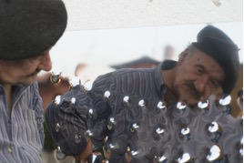 Angelo Brescianini, che i collezionisti calabresi ricorderanno per la bellissima retrospettiva curata da Antonio Falbo e realizzata nel giugno 2012 presso il Museo del Presente di Rende, sorprende per le sue Performances. La dimostrazione sostanziale del metodo e della tecnica con la quale concepisce le sue opere. “Cosa c’è di più istantaneo e imprevedibile di un proiettile che colpisce la superficie del metallo?”. L’artista usa questo linguaggio per definire il suo gesto e poi aggiunge: “Tuttavia Fontana cosa fece quando inferse per la prima volta il suo bisturi sulla tela provocando la prima lacerazione della storia dell’arte?”. Eppure i suoi proiettili non sono destinati ad offendere, anzi Brescianini evita abilmente di non sbrindellare il metallo, lascia che la pallottola plasmi delicate estroflessioni, producendo delle protuberanze, che egli definisce “bugnature”, capaci di catturare e raccogliere la luce riflessa. Attrarre lo spettatore e trasportarlo in una dimensione astratta: è questo il risultato che l’artista si è sempre prefissato.
