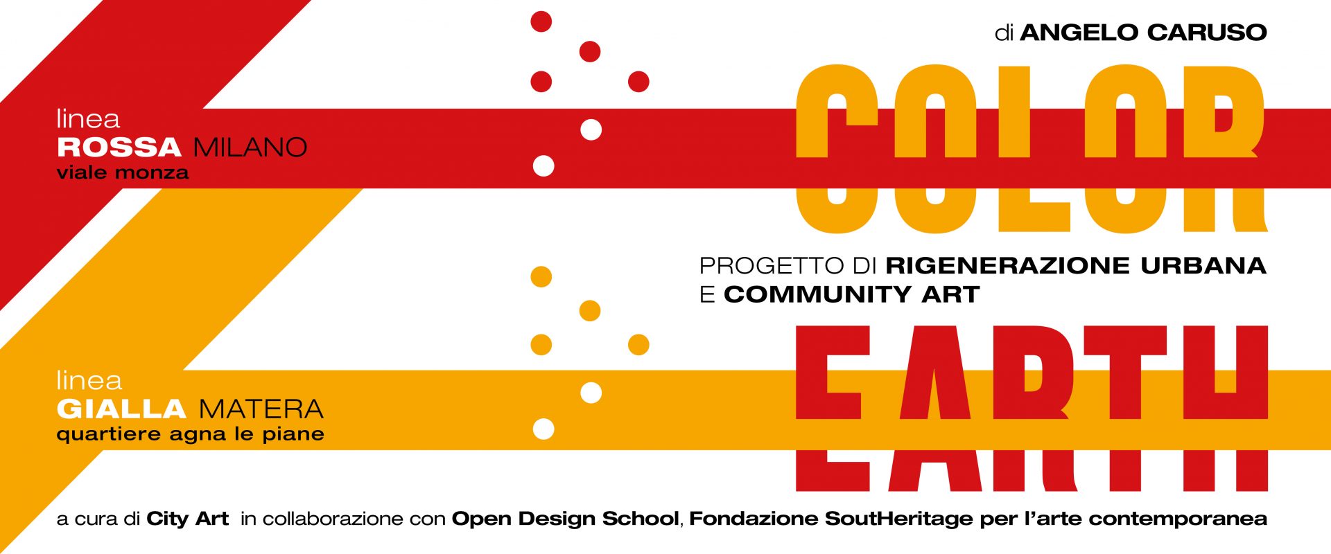 COLOR EARTH è un progetto di rigenerazione urbana e community art ideato da Angelo Caruso, finalizzato alla realizzazione di installazioni ambientali a Milano e Matera, curato da City Art, in collaborazione con Fondazione SoutHeritage per l’arte contemporanea e Open Design School, nel quadro di Matera 2019 Capitale Europea della Cultura.