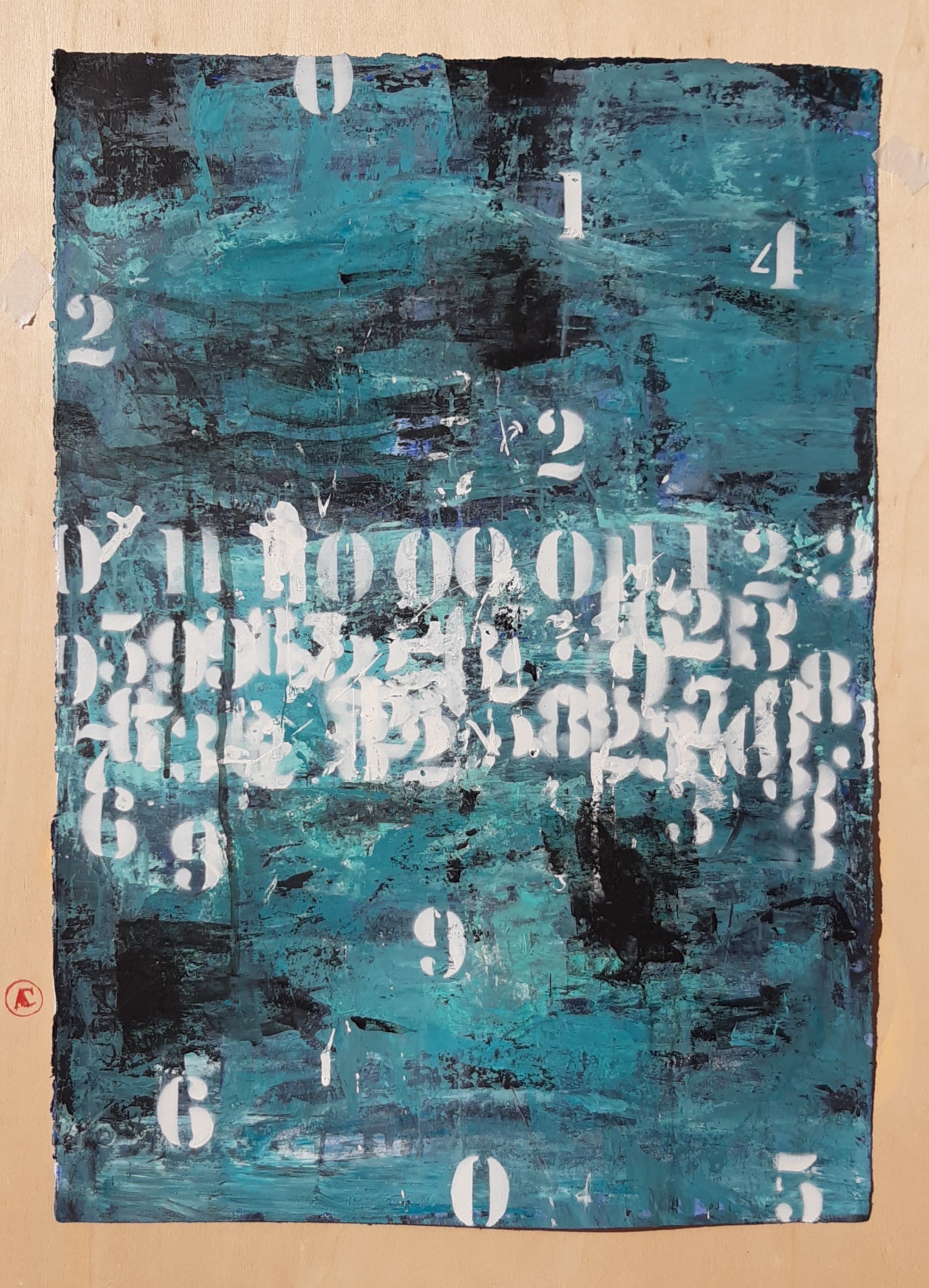 «Temporaneità, troppo, fragilità, movimento, instabilità, caducità, qui, ora, onde, come, vuoto, solitudine»: sono queste le parole chiave che l’artista sceglieva per raccontare la sua pittura. Ma i suoi ultimi lavori si concentrano su una nuova parola, un nuovo elemento: la pioggia. Pioggia che esiste solo grazie alla traccia che lascia dopo che è caduta. Pioggia che passa e pulisce, ma non cancella, non fa sì che il reale e la nostra stessa esistenza svaniscano. Le colature, caratteristica fondamentale dell’artista, trionfano ormai sui numeri, e la ricerca artistica di Colagrossi conosce un nuovo, incredibile, approdo, espresso dalla potenza emotiva di fredde esplosioni cromatiche.