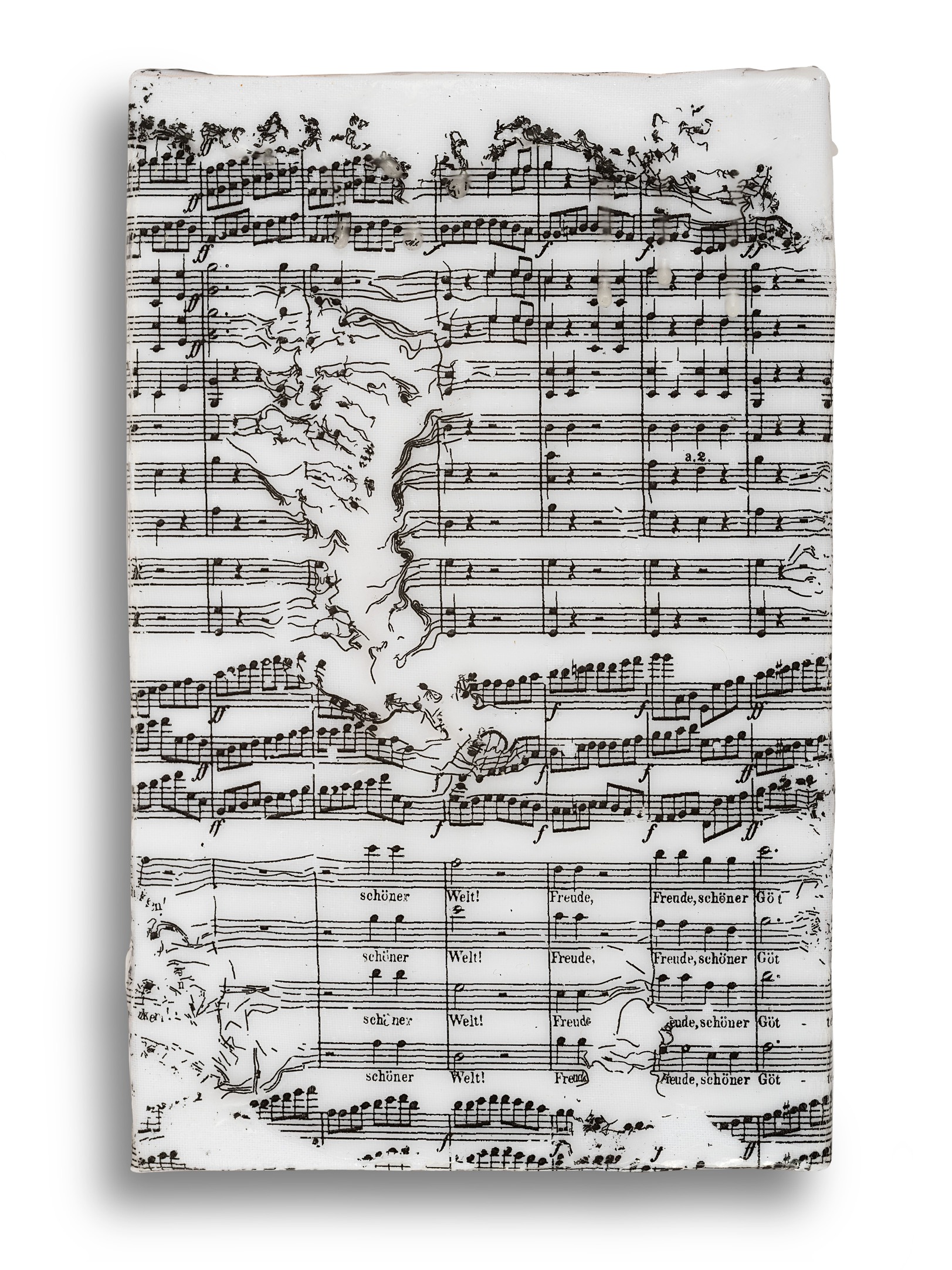 L’esposizione raccoglie il più recente ciclo di lavori realizzati in cera e paraffina spostando così la ricerca verso la materia. Testi tratti da indici borsistici, geografie alpine, partiture e letteratura vengono trascritti su superfici cerose e dissolti dal fuoco. È nell'istante del crollo, economico, ecologico, culturale, che Morandini trova il suo soggetto. Queste opere su cera e paraffina sono rese vive dal calore e dalla fiamma, diventando strumenti di trasformazione e ricerca estetica. Il pennello si trasfigura nel fuoco, che scioglie e plasma, facendo emergere testi e forme in continua metamorfosi. La materia passa da solida a liquida, poi si ferma, pronta a rifluire se nuovamente risvegliata, come un’onda che accoglie e abbandona. I segni e i testi, dalla Divina Commedia a scritti più intimi, si piegano al processo, rivelando fragilità, crolli e speranze. È un lavoro che intreccia ossessione e bellezza, sostenuto da una ricerca tecnica accurata, attrezzi costruiti su misura e un’attenzione all’estetica giapponese del vuoto e dell’impermanenza.