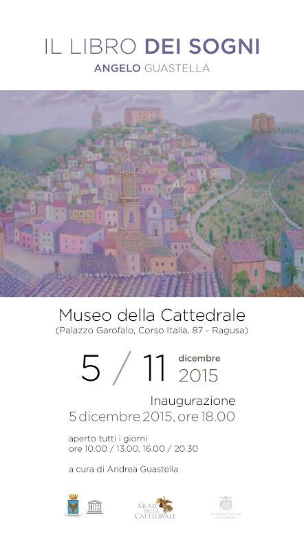 Si inaugura sabato 5 dicembre 2015, alle ore 18.00, presso il Museo della Cattedrale di Palazzo Garofalo a Ragusa, la mostra Il libro dei sogni, catalogo Aurea Phoenix Edizioni, a cura di Andrea Guastella. L’esposizione, realizzata col patrocinio del Comune di Ragusa, è un’antologica di Angelo Guastella, il “pittore dei sogni”, ed accoglie lavori compresi dal 1960 ai nostri giorni.