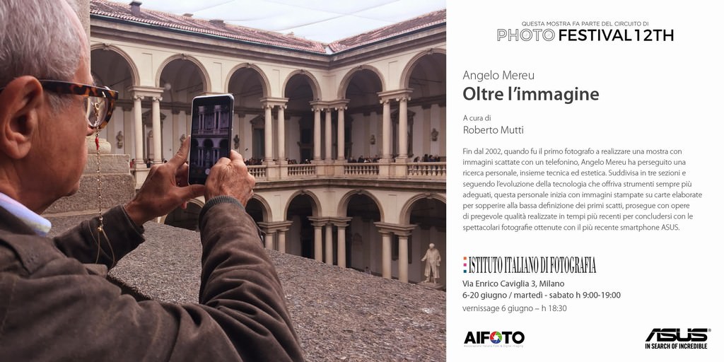 Fin dal 2002, quando fu il primo fotografo a realizzare una mostra con immagini scattate con un telefonino, Angelo Mereu ha perseguito una ricerca personale, insieme tecnica ed estetica. Suddivisa in tre sezioni e seguendo l’evoluzione della tecnologia che offriva strumenti sempre più adeguati, questa personale inizia con immagini stampate su carte elaborate per sopperire alla bassa definizione dei primi scatti, prosegue con opere di pregevole qualità realizzate in tempi più recenti per concludersi con le spettacolari fotografie ottenente con il più recente smartphone ASUS