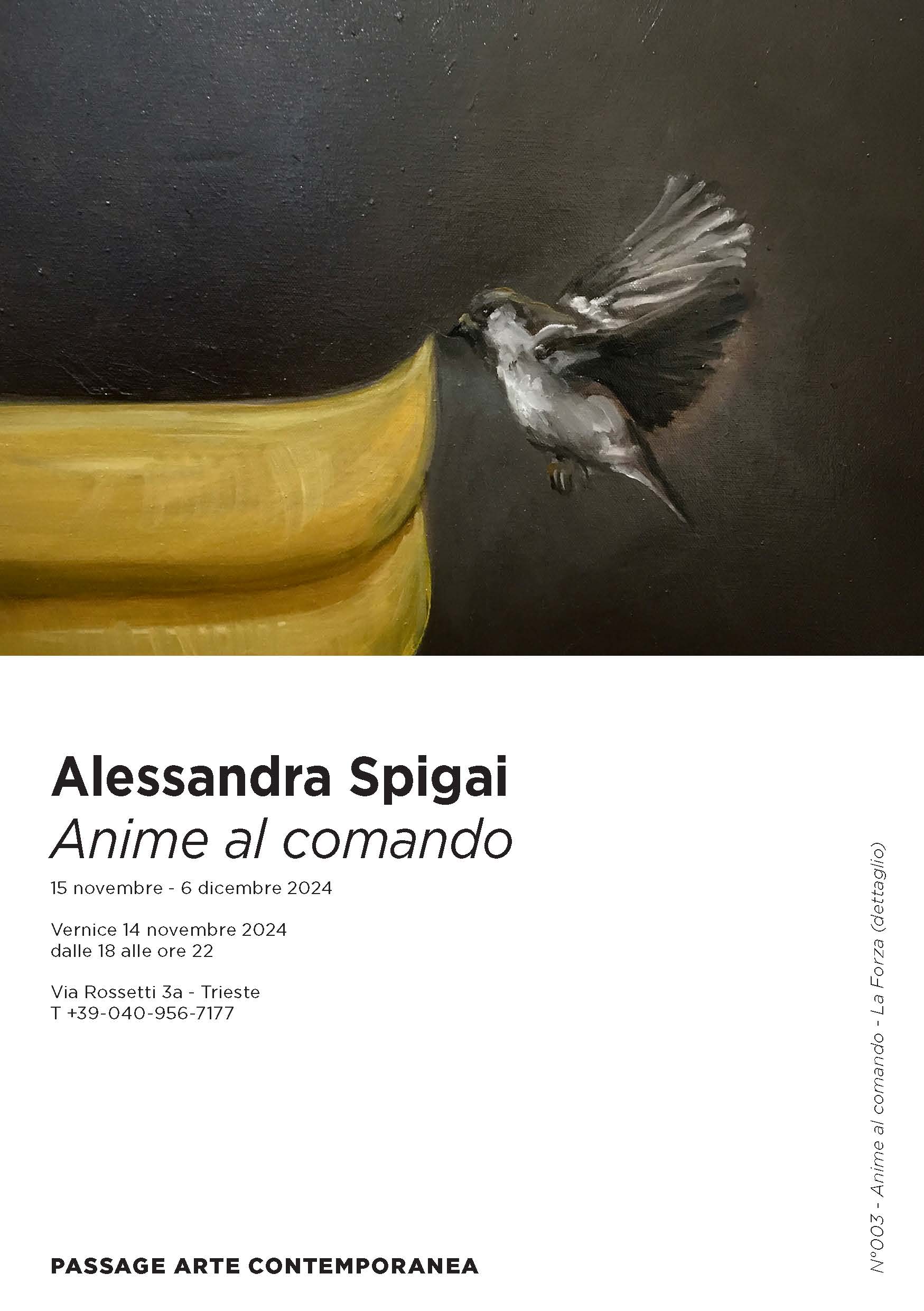 Anime al comando di Alessandra Spigai sono il racconto di una catarsi avvenuta nell’arco di tutta la sua vita. Anime dipinte e scolpite in tredici opere ad olio e tre sculture di bronzo. La presa di coscienza di un nuovo momento esistenziale strettamente correlato alla sua evoluzione artistica.