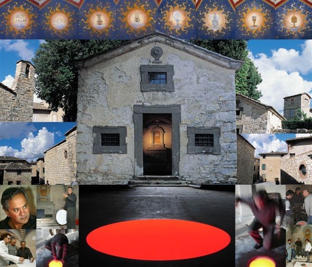 “Nella cappellina del Castello di Ama, al centro del pavimento si apre un cerchio luminoso, una piccola accesa voragine. Fuoco e luce. Sostanza preziosa, tanto indefinita quanto ingannevole, e effetto certo: “[A] thing exists in the world because it has mythological, psychological and philosophical coherence.”, dice Kapoor in conversazione con Homi K.Bhabha e aggiunge: “That is when a thing is truly made …”