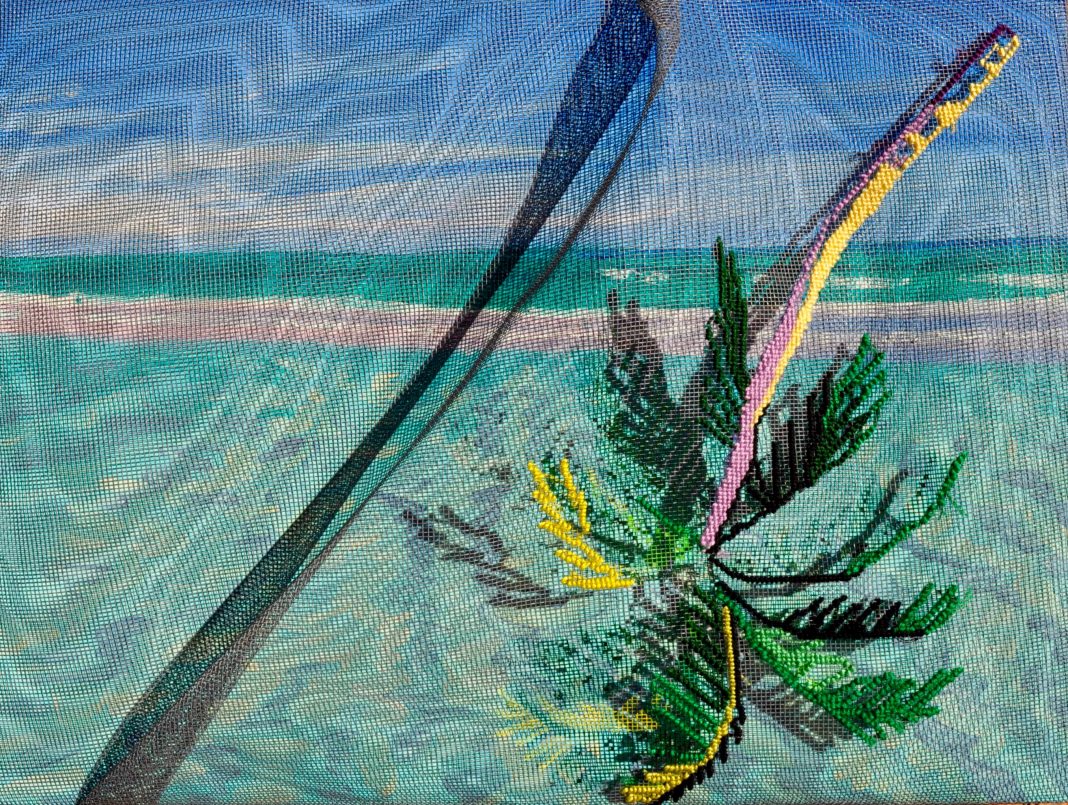 L’artista documenta tutto con tanti disegni, acquarelli e fotografie. Memorie ricamate e dipinte su delle zanzariere vengono appoggiate su paesaggi ad olio della spiaggia di Varadero. La bandiera cubana, dipinta su una garza lunga tre metri, crea una velatura leggera ed elegante davanti alle opere su carta appesi al muro. Guerra condivide le sue preziose scoperte in un’istallazione, creando un ambiente nostalgico, ma con un occhio verso il futuro.