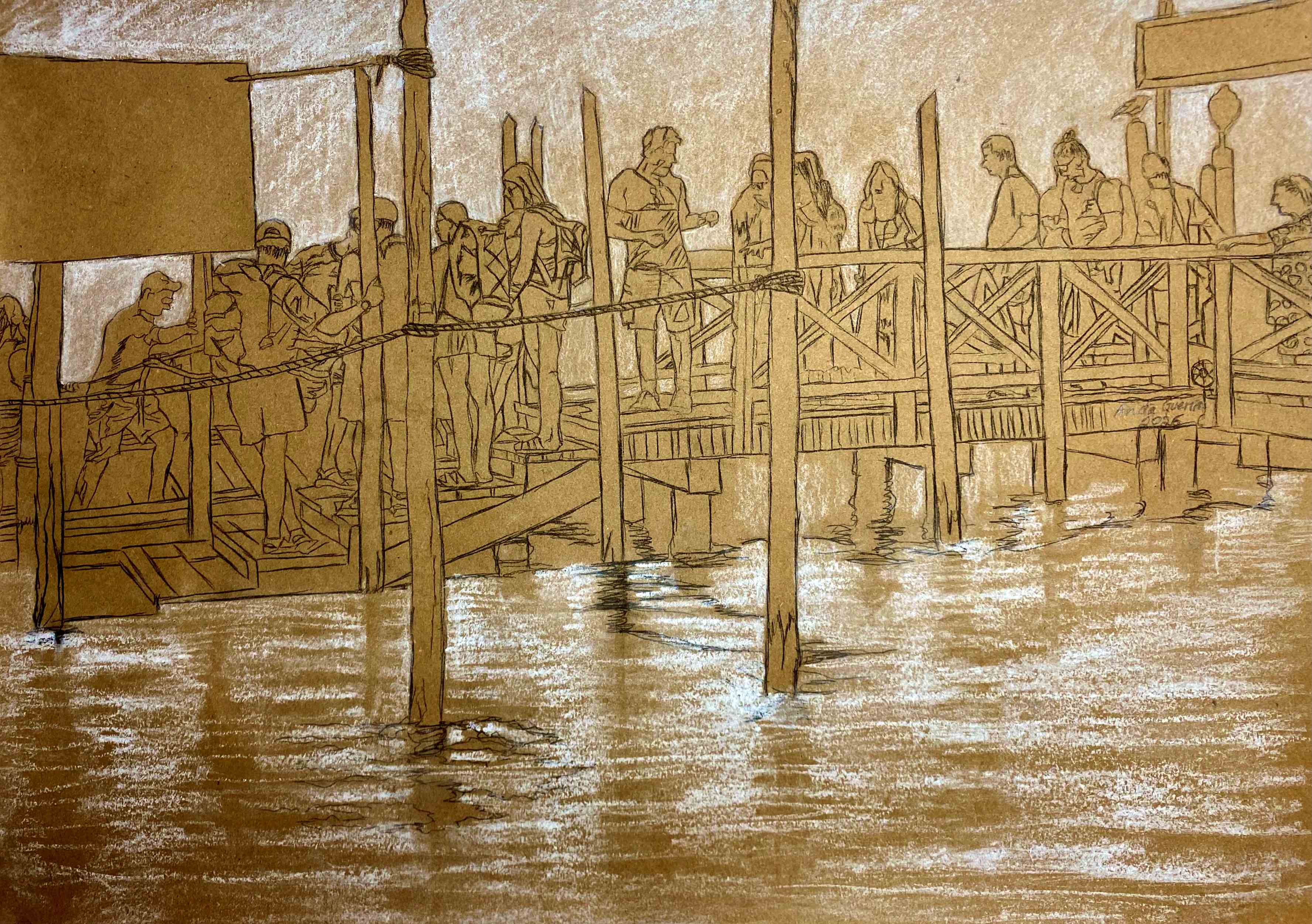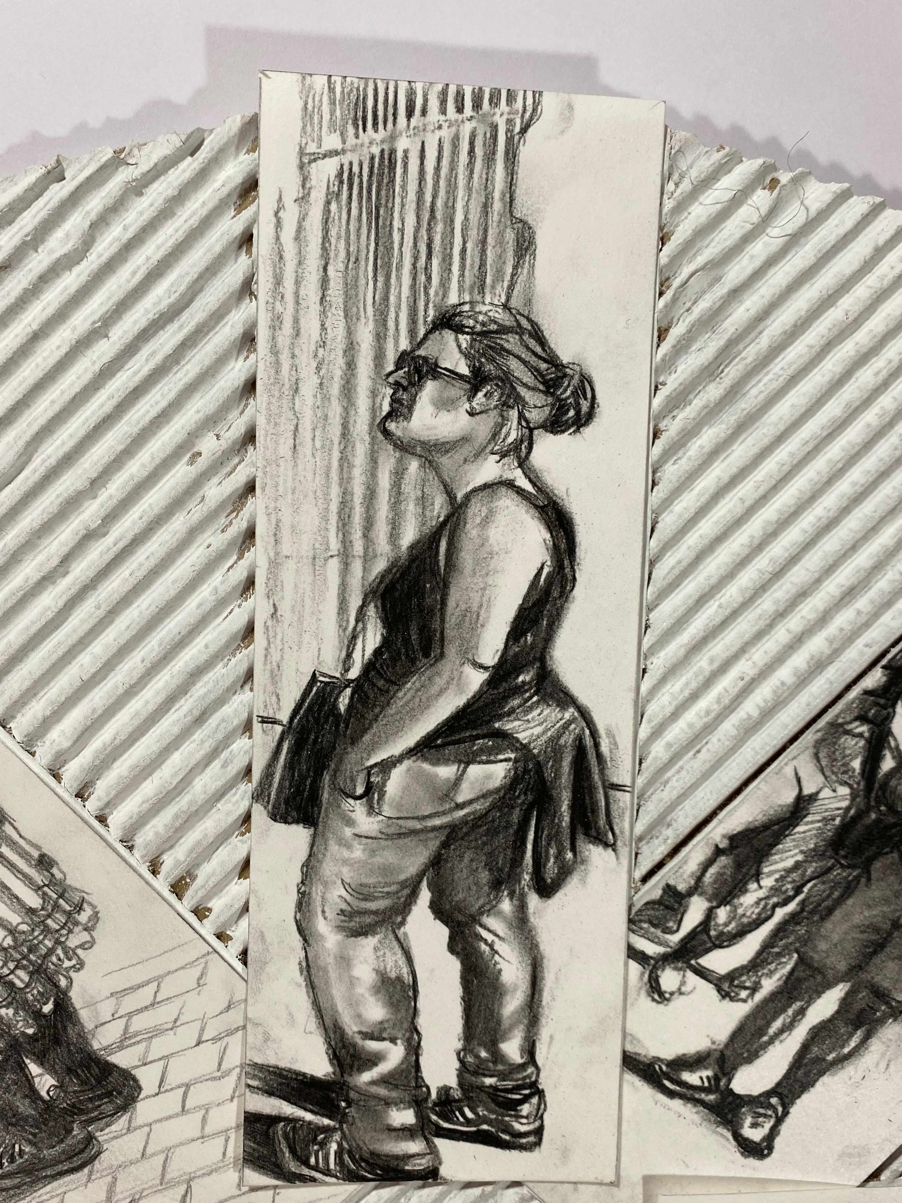 Attraverso le mie ricerche sul Grand Tour in Italia dei secoli XVII e XVIII, e le centinaia di incisioni fatte da Giambattista Piranesi vendute come souvenir ai viaggiatori benestanti del Nord Europa, ho cominciato a capire gradualmente le somiglianze ed i contrasti di chi, dai tempi antichi fino ad oggi, sceglie di viaggiare in l’italia. Ho iniziato il mio percorso artístico a Roma, disegnando direttamente nei musei o nelle piazze. Ho scoperto certi luoghi ancora accessibili, per esempio la Villa Farnesina a Trastevere o i Musei Capitolini, che generalmente attirano visitatori diversi dalle folle che riempiono la Cappella Sistina o il Pantheon. Gli ultimi spesso provengono dalle crociere di Civitavecchia, al fine di visitare la città per mezza giornata. È il pubblico “mordi e fuggi”. Poi, c’è il turista spirituale in pellegrinaggio nella Città Eterna per il Giubileo del 2025.