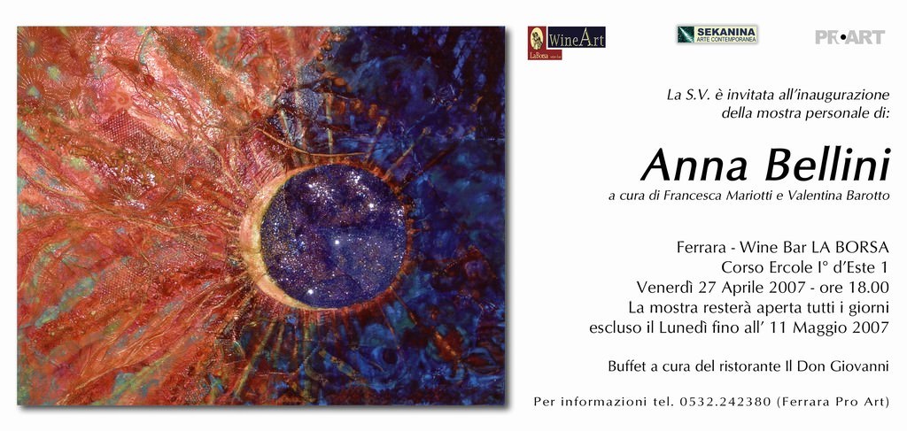 Tale evento si va ad inserire nella iniziativa “Wine Art”, atta a promuovere l’espressione e la creatività di nuovi ed affermati talenti che si affacciano nell’esigente mondo dell’arte a Ferrara