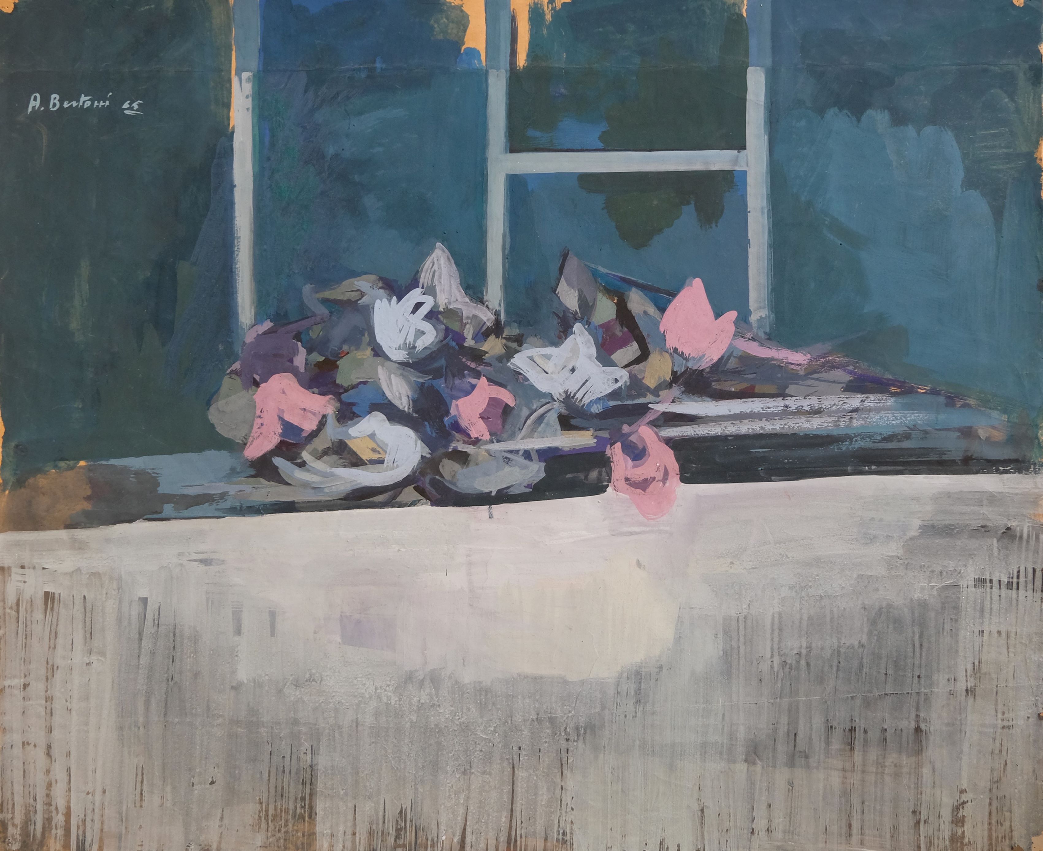 Le grandi tempere della Bertoni e i suoi olii, che provengono da uno studio più attento, ci riportano a quella opacità del sentimento che fa del quadro memoria prima che rappresentazione, che prende alla gola come un ricordo prima che raffigurazione.