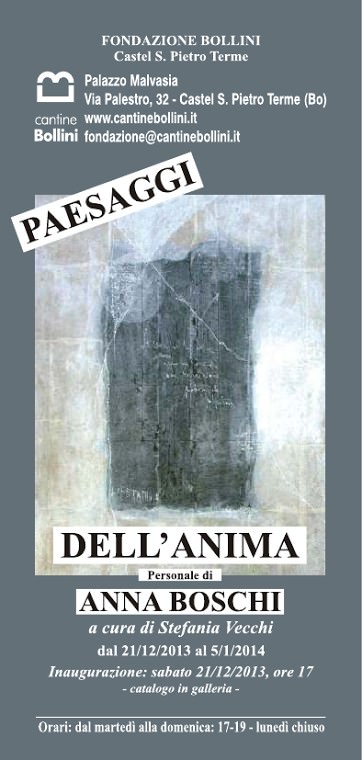 “CANTINE BOLLINI” – Via Palestro 32 a Castel S.Pietro Terme (BO, si inaugura la personale di Anna Boschi “PAESAGGI DELL’ANIMA” :