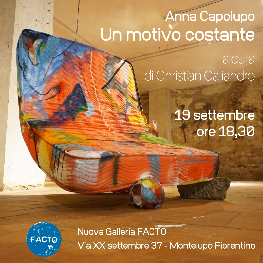 A conclusione della residenza artistica di Anna Capolupo presso FACTO a Montelupo Fiorentino (FI), si terrà la mostra “Un motivo costante”, curata da Christian Caliandro. La pittrice sta sviluppando – in una sorta di “mostra-non mostra” una personale riflessione sui concetti di abbandono, paesaggio