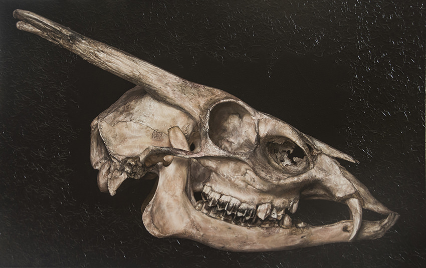 La prima, Anna Cirillo, ha deciso di dipingerle, di creare con una tecnica che deriva dallo studio dei classici, una serie di ritratti di animali, o per meglio dire di bucrani, teschi e scheletri ; soggetti che campeggiano in tutta la loro maestosità su fondi preziosi: oro, rosso pompeiano o argento.