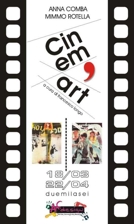 Anna e Mimmo… in questra mostra esiste un dialogo tra i due artisti, attraverso le loro opere. Questo dialogo avviene tramite i collage che sono il risultato di un percorso che nasce con la mec art . I soggetti sono tratti da immagini cinematografiche, strappate e rapite da manifesti, che reinterpretate rappresentano un grido di ribellione e provocazione nei confronti della banale comunicazione pubblicitaria, resa trasgressiva dalle opere di Rotella e invece trasformata in un inno al cinema da Anna Comba, che mette in risalto la poetica del divismo di celluloide offrendo una seconda chance ai suoi personaggi che vengono reinseriti nei suoi cinema di carta .
