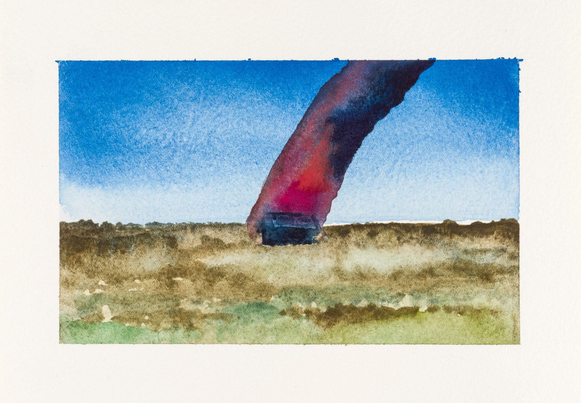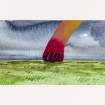 Questo fuoco è chiaramente visibile nelle raffigurazioni di Salvatore Palazzo, nelle sue “case in fiamme”, acquerelli che l’artista replica in modo quasi instancabile da tre anni. Palazzo ci trasporta in un luogo sospeso nel tempo che richiama una dimensione familiare, quasi una figura retorica, davanti alla quale i colori continuamente cangianti delle fiamme, del paesaggio e della casa non fanno che amplificare un sentimento nostalgico e di solitudine. Ironico forse il fatto che l’autore scelga proprio una tecnica a base d’acqua per questo tipo di rappresentazioni come a voler giocare sempre tra due opposti.