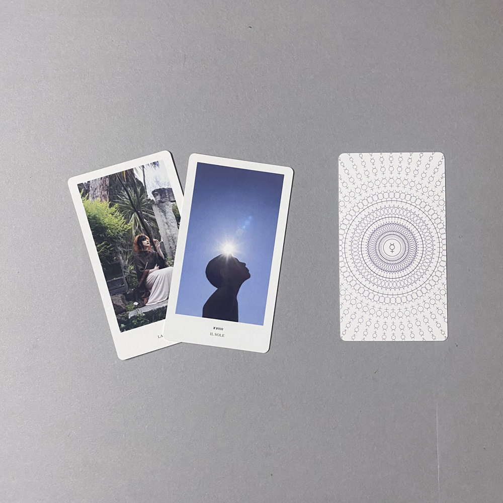 All’interno del cofanetto, oltre ai 22 Arcani Maggiori, un libretto con la funzione di guida introduce in breve la storia dei Tarocchi ed illustra la composizione e le caratteristiche del mazzo di carte, descrivendo, inoltre, ogni figura attraverso delle parole chiave, un breve testo e alcune domande che la carta può ispirare. Nel secondo libretto un saggio di Emanuele E. Pelilli e un racconto breve di Alessandro Carrer sono un ulteriore approfondimento sul tema.