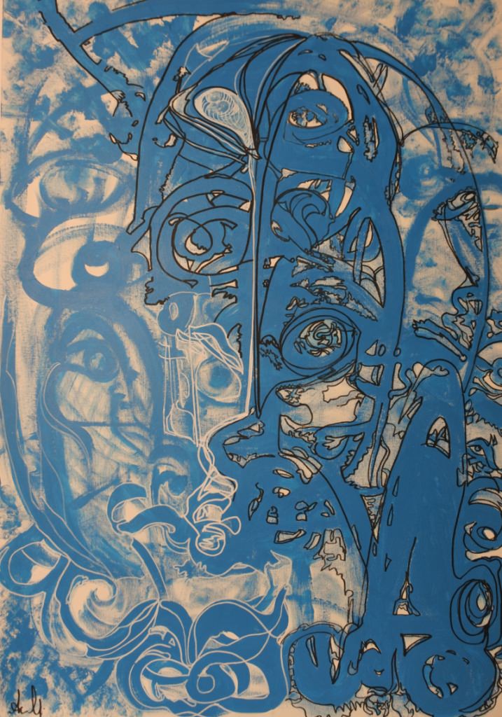 Nelle opere dell’artista foianese le immagini si intrecciano, scontrano, fondono e confondono. Le poliedriche forme scaturiscono e scompaiono le une nelle altre, per poi riemergere nuovamente in un vortice magmatico continuo che stordisce ed emoziona l’osservatore. Una profonda ricerca identitaria ma anche un inno all’imprevedibilità della vita, che nelle sue tante sfaccettature e contraddizioni ci pone ogni giorno di fronte all’incognito.