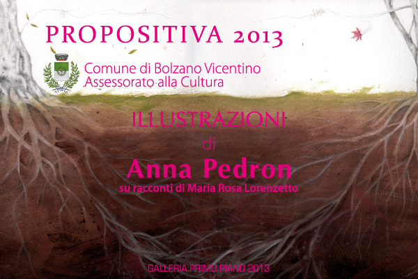 Terzo appuntamento con gli Illustratori a Bolzano Vicentino, protagonisti della Rassegna “Propositiva 2013”, con le opere di Anna Pedron. L’allestimento in questo caso è il risultato di una collaborazione tra l’illustratrice Anna e la scrittrice di racconti Maria Rosa Lorenzetto da cui la Pedron ha interpretato alcuni brani tratti da due storie. La prima storia intitolata “Olivo spagnolo” ha per protagonista un ulivo che narra del suo viaggio dalla Spagna a Vicenza per finire nella casa dell’autrice (Maria Rosa) a Bolzano Vicentino insieme ad un acero di cui diventerà amico. Il secondo racconto intitolato “Le piante ci parlano” è un susseguirsi di nostalgici ma piacevolissimi ricordi sui momenti trascorsi durante gli autunni della vita, una vita che si rivela essere come le stagioni. Tanto sentimento e spirito di osservazione in questi racconti; altrettanto emozionanti sono le immagini proposte sulle tavole illustrate della Pedron. La collaborazione delle due autrici si integra perfettamente in uno stile che suscita tenerezza commovente, scorrevolezza nel raccontare momenti e situazioni, scioltezza nel rappresentarli. I lavori di Anna Pedron sono eleganti nella rappresentazione e poeticamente intimi nell’atmosfera: la tecnica mista con tinte prevalentemente neutre, fa da sfondo ad immagini che si rivelano a poco a poco con disegni ben eseguiti e delicatamente sfumati da colori pacati e rassicuranti. Anna Pedron si sta dedicando all’illustrazione a tempo pieno, partecipa a mostre e concorsi riscuotendo consenso di pubblico e critica.