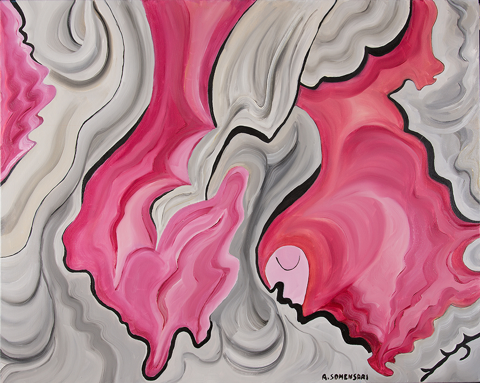 E infine resta, al di là d’ogni altra conquista, la volontà fondamentale di comunicare, di esprimere un mondo sensibile e parallelo, con tutta la vita che lo agita. È questo mondo che vedo affiorare in Agata (2020). Cosa sfugge al tempo? Forse il sentimento del bello, quello che si materializza sulla tela? Eppure non bastano la meraviglia o l’incanto seduttivo dell’opera a sottrarci alla precarietà di ogni cosa, perché neanche l’arte (e il piacere del suo farsi), per quanto ci regali momenti incantati, può dare garanzie di sicurezza. La buona pittura però “nutre” la vita, costruisce idee e compensa molte debolezze dell’esistenza umana. È seguendo questa direzione che Anna Somensari ha voluto esplorare nuovi ambiti, segreti e ignoti, tra dubbi e determinazione. E alla fine si comprende veramente come le sue opere chiedano, innanzitutto, di essere guardate con la grazia dell’abbandono. Perché al centro di tutto il suo percorso resta l’artista che è donna, con la sua specifica complessità, sempre insoddisfatta di nuove mete.