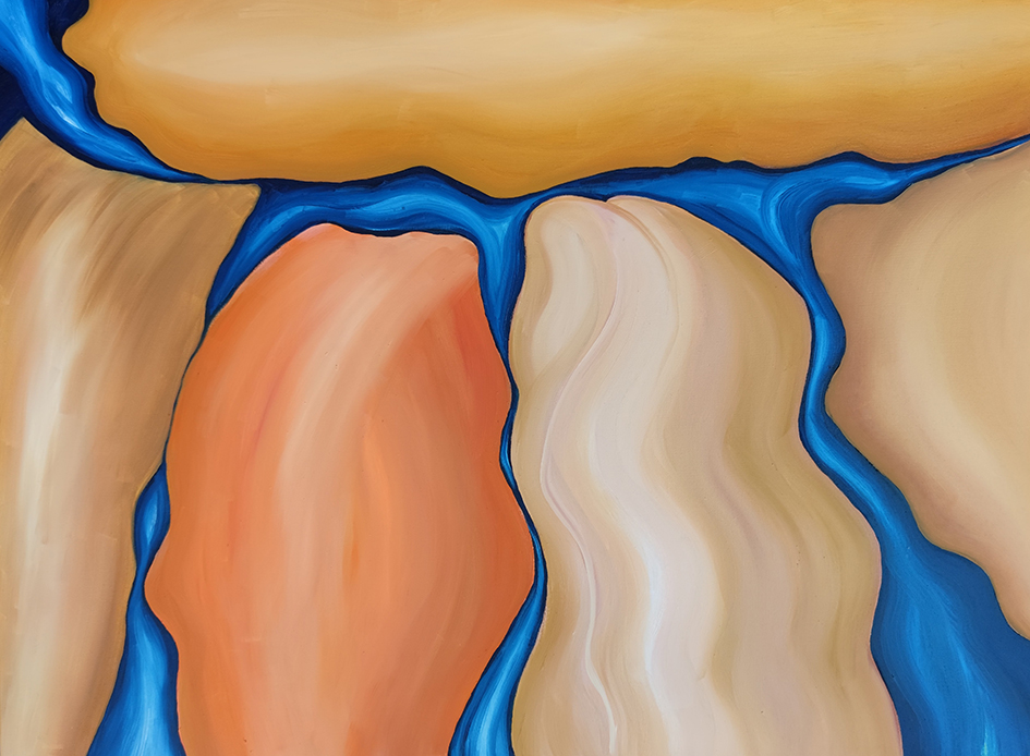 È nell’unicità e nella reciprocità dei nessi tra ognuna di queste opere che possiamo individuare un nuovo percorso espressivo di Anna Somensari: il valore e la bellezza delle tessiture cromatiche emergono infatti sia dalla dimensione relazionale che dalla singola autenticità di ogni opera. È così che la sua creatività trova una inedita dimensione poetica, un percorso originale del tutto riconoscibile pur nella molteplicità dell’universo estetico. Spazio, tempo, ricordi, emozioni: li cerchiamo Nell’acqua dove i titani danzano (2017), dove iniziamo a scoprire la sequenza delle sue metafore estetiche. L’opera rammenta le Amalassunte di Licini e, non a caso, dal colore agitato emerge la traccia di un rudimentale profilo, che danza in un mare cromatico, assolutamente libero da sovrastrutture accademiche. Tutto, nella sua intensità evocativa, è astratto dal colore, a segnalare come Anna si muova, in questi anni più recenti, in un suo personale astrattismo, alla ricerca di un’anima segreta che si cela oltre il visibile. La sua pittura diventa densa di nessi onirici, impregnata di spiritualità: per questo l’artista cerca le immagini in un suo universo più intimo e si incanta per la bellezza del creato. Avete mai osservato il foliage dei boschi d’autunno, quando intrecci di ocra e di rossi stupiscono i sensi? Ecco come Berkshire’s foliage (2020) offre la bellezza di una mimesis che si emancipa dalle apparenze: la tela si accende di luce per indagare e rivelare il mistero del nostro essere nel mondo. Perché, infatti, come foglie noi siamo. La diafanità dell’alfabeto enigmatico, “primordialista”, suggerisce una componente letteraria e narrativa: è la necessità di appropriarsi di un linguaggio più connotativo che denotativo, è l’impegno di tracciare un racconto in mutamento, fatto di colore e segno. Anche Il circolo Pickwick (2020) nasce dal vissuto della pittrice. Qui il riferimento a Dickens assume una declinazione mantovana, in cui l’artista parla della cerchia ristretta della famiglia, dei fratelli e delle sorelle, ma trasforma il racconto in un’astrazione, operando una sua sintesi tra realtà e sperimentazione espressiva: inutile (e inappropriato) cercarvi una raffigurazione realistica. Cinque isole cromatiche, come antichi conci di pietra di un muro, delineano un movimento che richiama memorie di Sean Scully, il grande pittore statunitense. Anna si cala, a suo modo, in una poetica essenziale e minimal, assecondando gli orizzonti interiori della sua creatività, mettendo a punto le forme di un pensiero che procede per immagini. Accade la stessa cosa anche a chi si accinge a un lavoro di scrittura, in cui è sostanziale sia trovare le parole corrette sia scegliere quelle che creano dilatazione semantica. Il medesimo presupposto è necessario anche per comprendere i moniti sottesi in Gli alberi ci guardano (2021): la bellezza deve caratterizzare il nostro stare nel mondo ma è appunto questa bellezza che deve spingerci a coltivare un’etica diffusa del rispetto per la natura. Le composizioni di Anna, veri reperti senza tempo, coniugano dunque le tracce importanti di una visione colta e di una intensa capacità di comunicare e testimoniare. Risulta dunque con evidenza come non sia semplice (e a volte anche superfluo) ripercorrere e decifrare appieno l’evoluzione estetica dei suoi recenti anni di ricerca, per restituire, nei limiti del linguaggio critico, la genesi del suo immediato e affascinante linguaggio evocativo. E per questo, inevitabilmente, diventa evocativo anche il mio procedere, che si sofferma là dove una allegorica (o reale) lama di luce si accende e chiarisce il percorso. A questo serve inoltrarsi tra Bucce e cortecce 1 (2015) tra lame di blu e di verde, dove, nel ritmo franto dell’opera e nell’inafferrabilità dei semi di senso, emerge ancora il nesso fra natura, pittura e cultura. Arrivo addirittura a smarrirmi nel labirinto di forme cromatiche che delineano l’immagine. Osservo le stesure pastose dell’olio, che rielaborano, nella sua dimensione straniante, una pittura densa di echi di naturalismo astratto, e mi incammino per Sentieri diversi (2019); pezzo dopo pezzo emerge allora la coerenza di un percorso, un susseguirsi di legami tra opere, unite da un filo sottile che cristallizza quotidiane emozioni. Una traccia residua di reale regala a chi guarda il fascino di immagini felici, tra bianchi cerulei, azzurri radiosi e ocre che traducono l’esperienza della materia in colore.