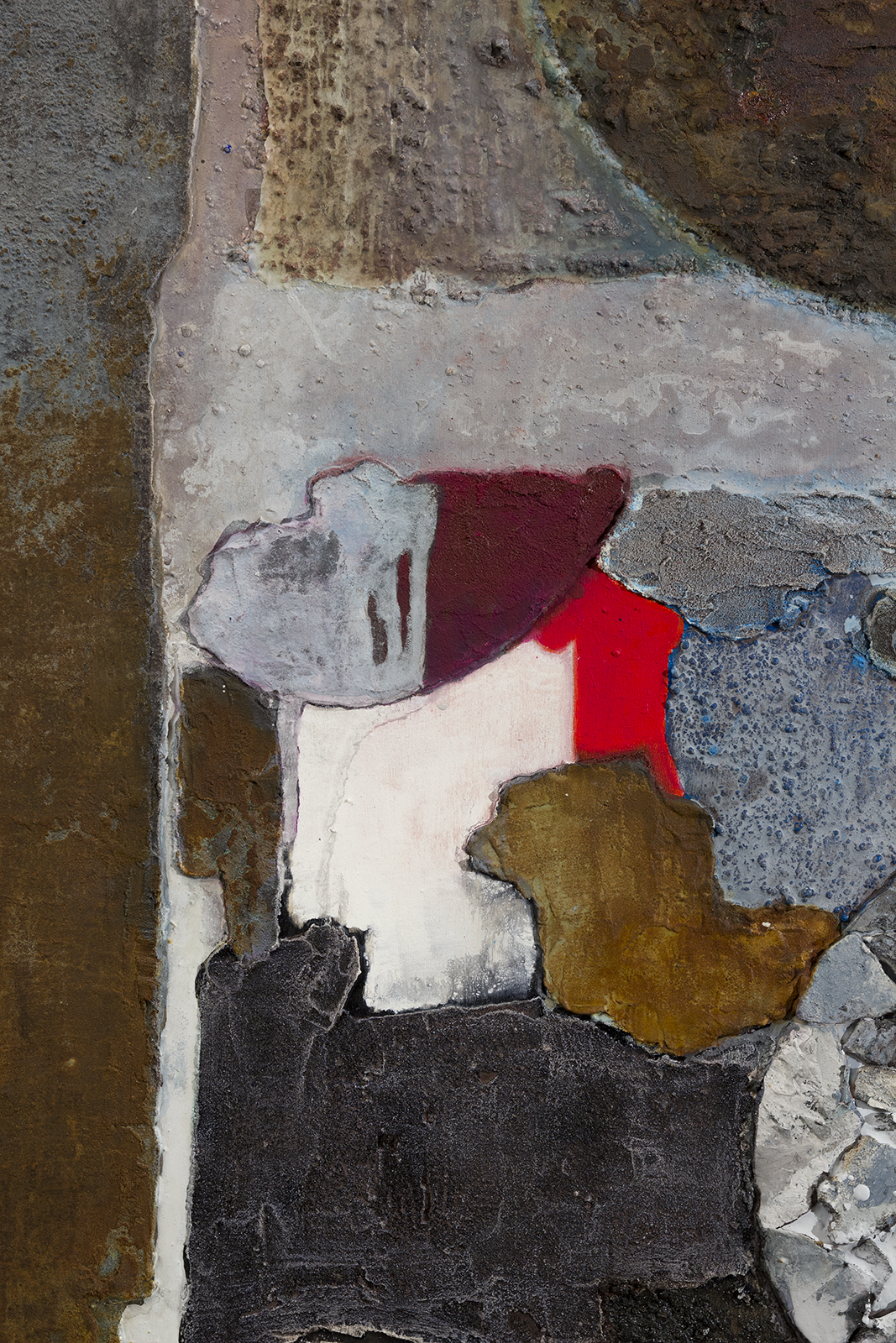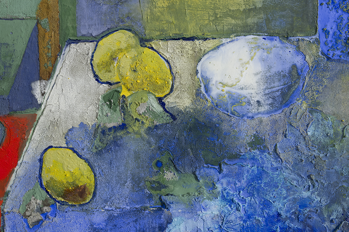La tecnica di Anna Vinzi è il frutto di una decennale esperienza della materia pittorica. Il risultato cromatico è una sapiente stratificazione di pigmenti, gessi, e processi chimici che sembrano coagulati da una forzatura: a tratti si respingono per ritrovarsi poi in adiacenti campiture. Linee e forme in cui la definizione si confonde con il mescolarsi. Colori dissonanti trovano inediti equilibri. Il legno, la tela e qualunque materiale si offra all’artista come “impronta fossile”, sono il supporto di una narrazione sedimentata, articolata e che trova la sua sintesi nel colore e nell’omogenea, finale, visione d’insieme.