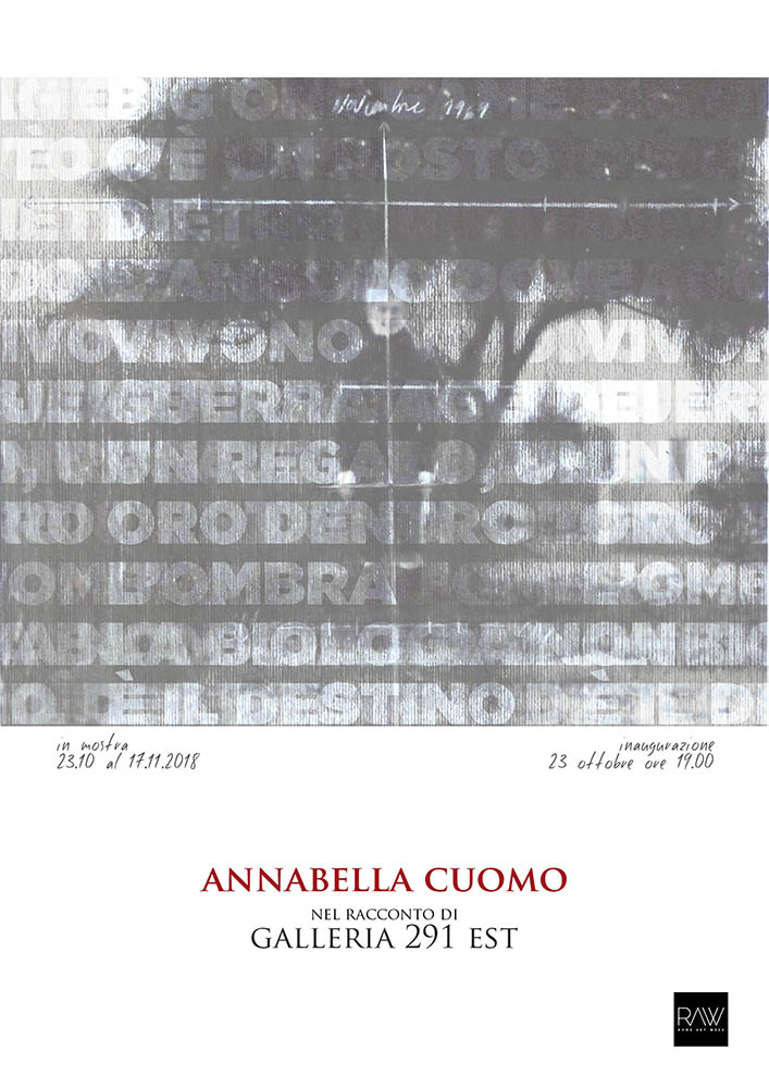 Ad apertura della stagione espositiva 2018/2019, la Galleria 291 EST è lieta di presentare al suo pubblico storico, come alle nuove reclute, la mostra Annabella Cuomo, nel racconto di Galleria 291 Est, che va a collocarsi tra la rosa di eventi della RAW - Rome Art Week.