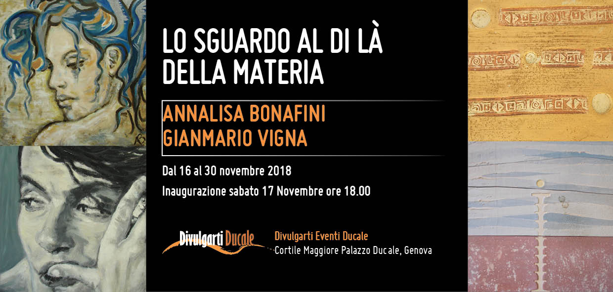 “lo sguardo al di là della materia” è la mostra che si tiene a Genova, presso Divulgarti Eventi Ducale vede protagonisti gli artisti annalisa bonafini e gianmario vigna, valenti artisti accomunati dall’uso sapiente della materia in pittura e ceramica.