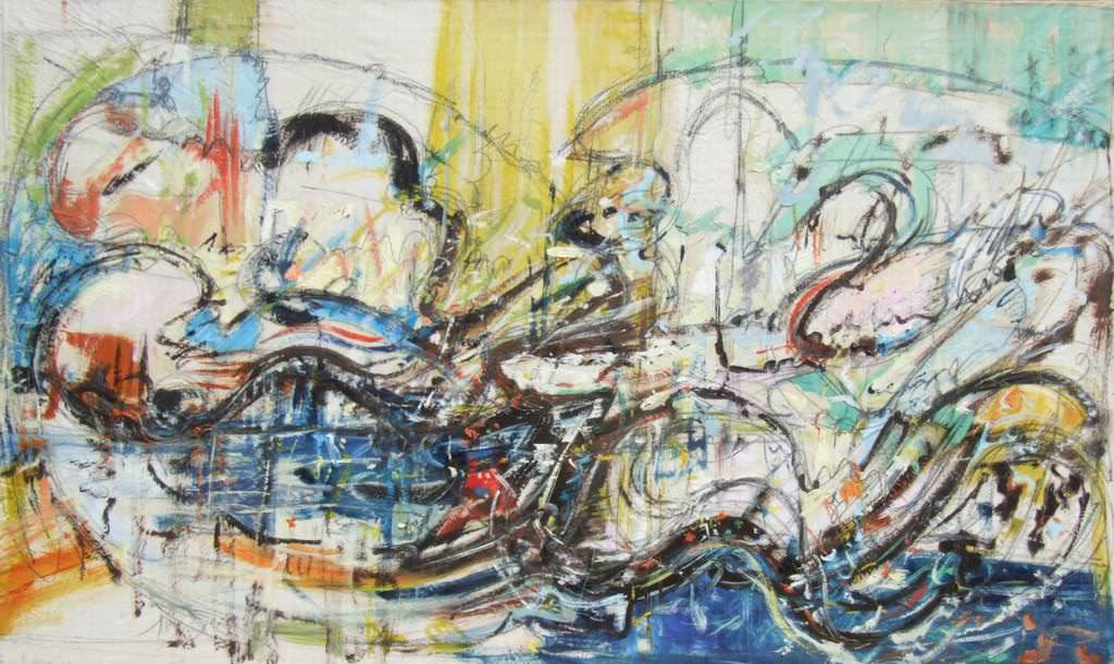 Dunque nell’opera è dipinto il continuum tra la vita e la morte attraverso la resa dinamica della visione di due corpi. Essi sono costipati in uno spazio insidiato da sinuose creature striscianti che concorrono alla loro trasfigurazione.