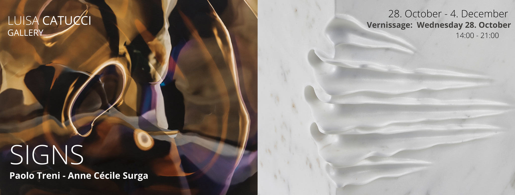 La scultrice francese Anne Cecile Surga lavora con il marmo, mentre l’artista italiano Paolo Treni utilizza materiali molto innovativi e moderni: plexiglas, vernice, smalto e laser. Ma qualcosa li unisce: l’abilità condivisa di creare un segno, la cui forza sia in grado di dare voce a un’illusione.
