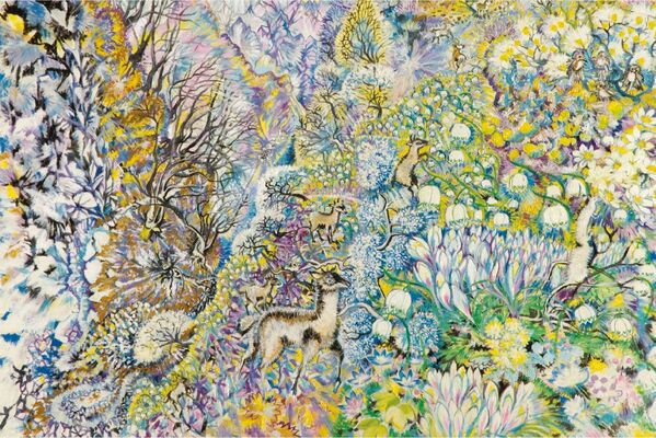 raggruppa in un percorso “ascensionale “ circa una trentina di opere selezionate tra tutte quelle prodotte dagli anni 70’ agli anni 2000, periodo nel quale Annette vive nella sua casa di montagna a Cravagliana. Negli anni di residenza in Valsesia Annette fa lunghe passeggiate solitarie che si fondono con il progressivo emergere del subcosciente, nel suo ritiro popolato dall’immaginazione e attraverso l’amicizia con la natura, i suoi colori, i suoi odori, i suoi rumori, essa cerca di espugnare la felicità attraverso la pittura. l’opera Asleep Amid The Ice con la quale si apre la mostra segna la fine della sua produzione artistica, il titolo porta con sé un messaggio premonitore avvolto dall’aura fiabesca nella quale Annette ha inscritto tutta la sua visione del mondo. La sua cospicua produzione considera opere pittoriche ma anche disegni, ceramiche, manufatti, opere filmiche e una serie di scritti. Annette Lorentzen Casalini è stata un’artista autodidatta la cui espressione artistica si può inscrivere nella tradizione di un’arte folk surreale, la sua attitudine all’uso simultaneo di molteplici racconti crea intrecci di narrazione visive sospese in una visione favolistica.
