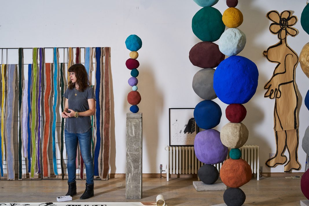 La mostra riunisce le opere distintive dell’artista: le sue caratteristiche ‘Stacks of Joy’, composte da “palloni” impilati che ascendono verso l’alto, rese affascinanti non solo dai vivaci colori provenienti da tutto il mondo, ma anche dalla precarietà apparente che le contraddistingue; gli arazzi e i ricami, su cui Morris cuce i suoi surreali disegni automatici.