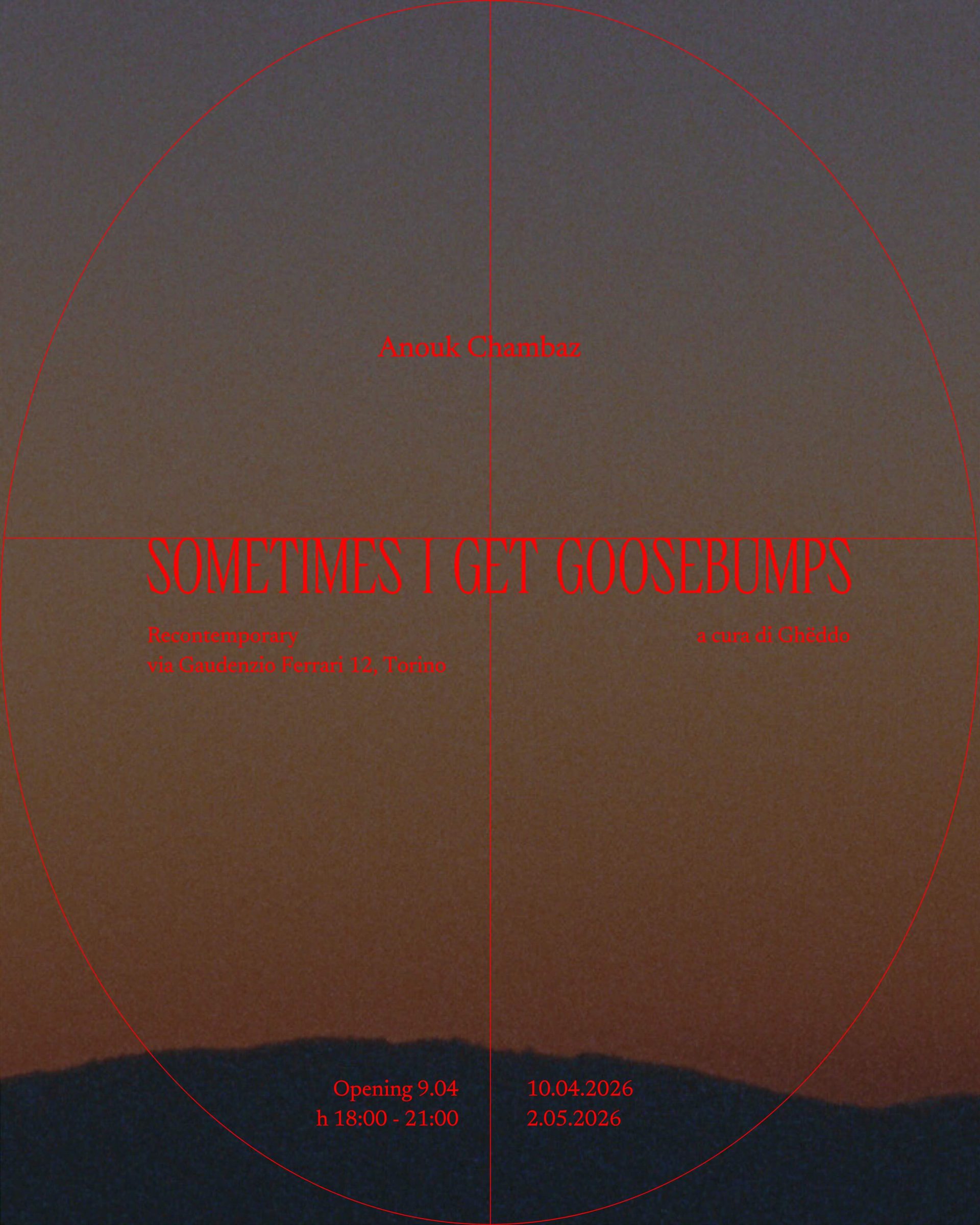 Sometimes I get goosebumps è la personale di Anouk Chambaz da Recontemporary (Torino), a cura di Ghëddo per TO.BE IV – Intracore, inaugurazione 9 aprile, 18–21. Tre video esplorano metamorfosi, corpo e natura tra ecologia, memoria e paesaggio.