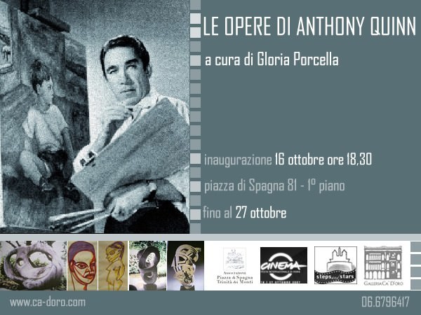 Le opere del grande attore Anthony Quinn, sono esposte dal 16 al 27 ottobre alla galleria Cà d’Oro di Roma durante il periodo della festa Internazionale del Cinema