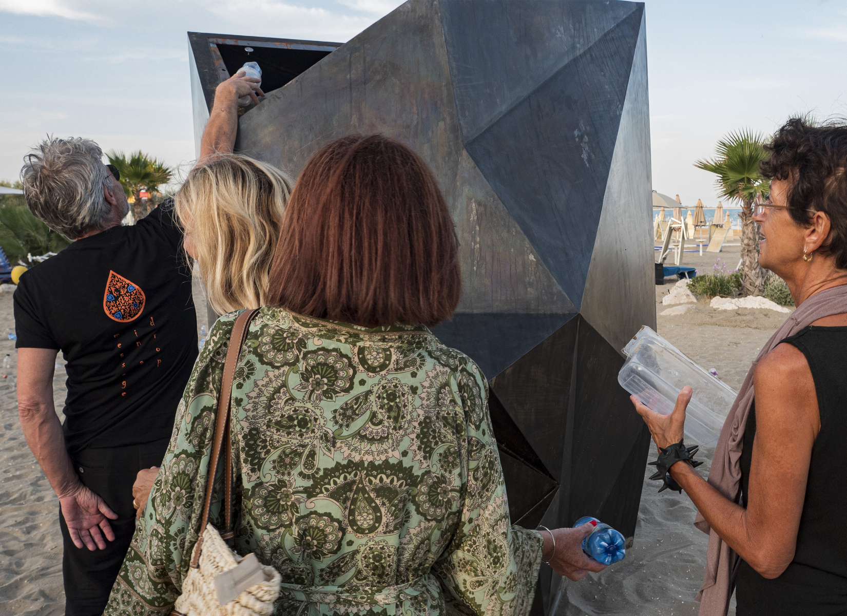 ANTIMATTER_Stone è una scultura a grande impatto sociale: materiale di scarto, la lamiera recuperata, che ingloba rifiuti plastici. Materia che si trasforma in antimateria, una “pietra” che contiene il rifiuto, lo incontra, ci si scontra e annichilendo produce energia. Energia per un nuovo mondo: partecipato, responsabile, sostenibile. La scultura è stata realizzata con il contributo di Paci Paolo Siderurgica, Stame, Tesserini e Molteni Vernici.