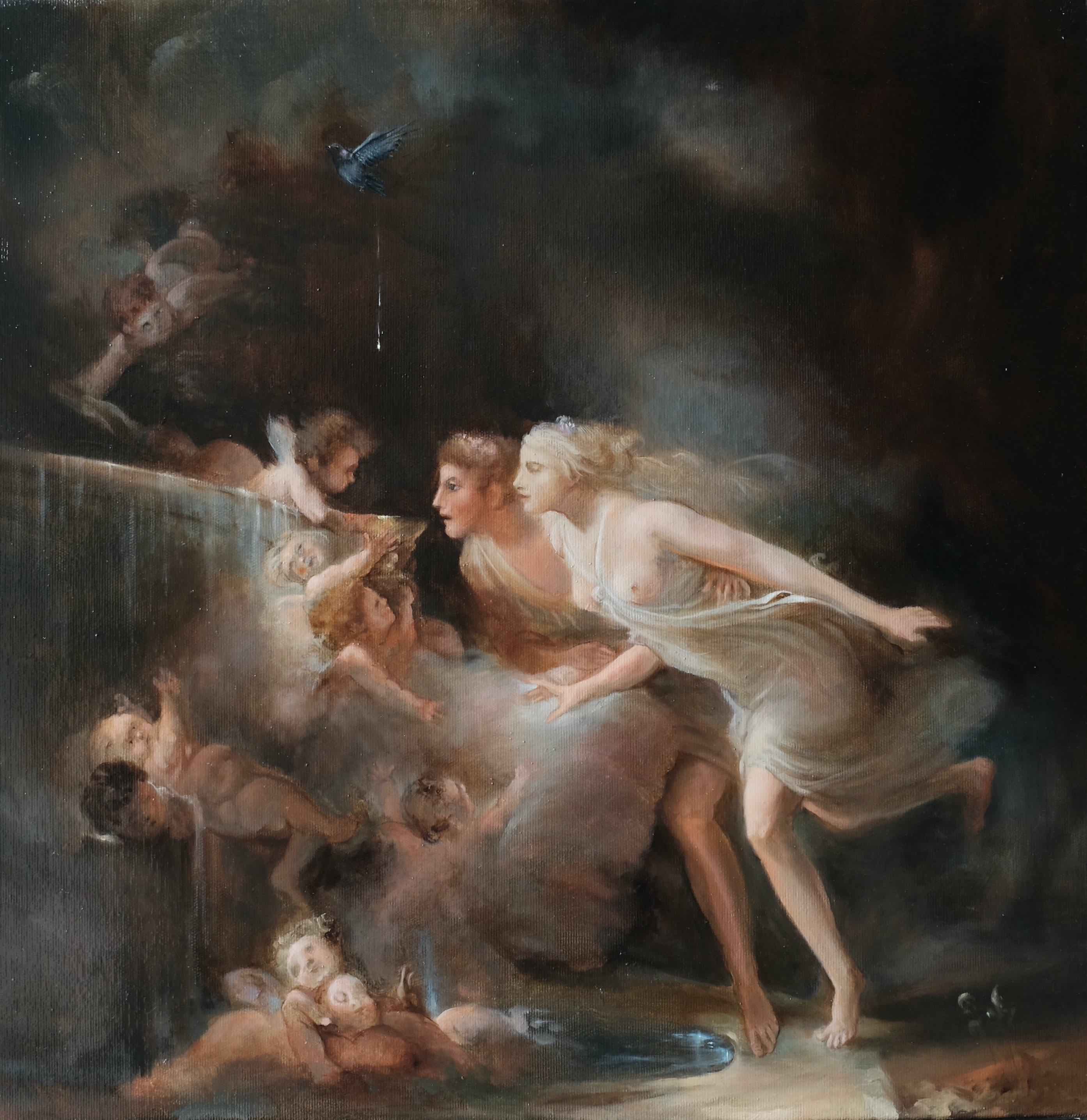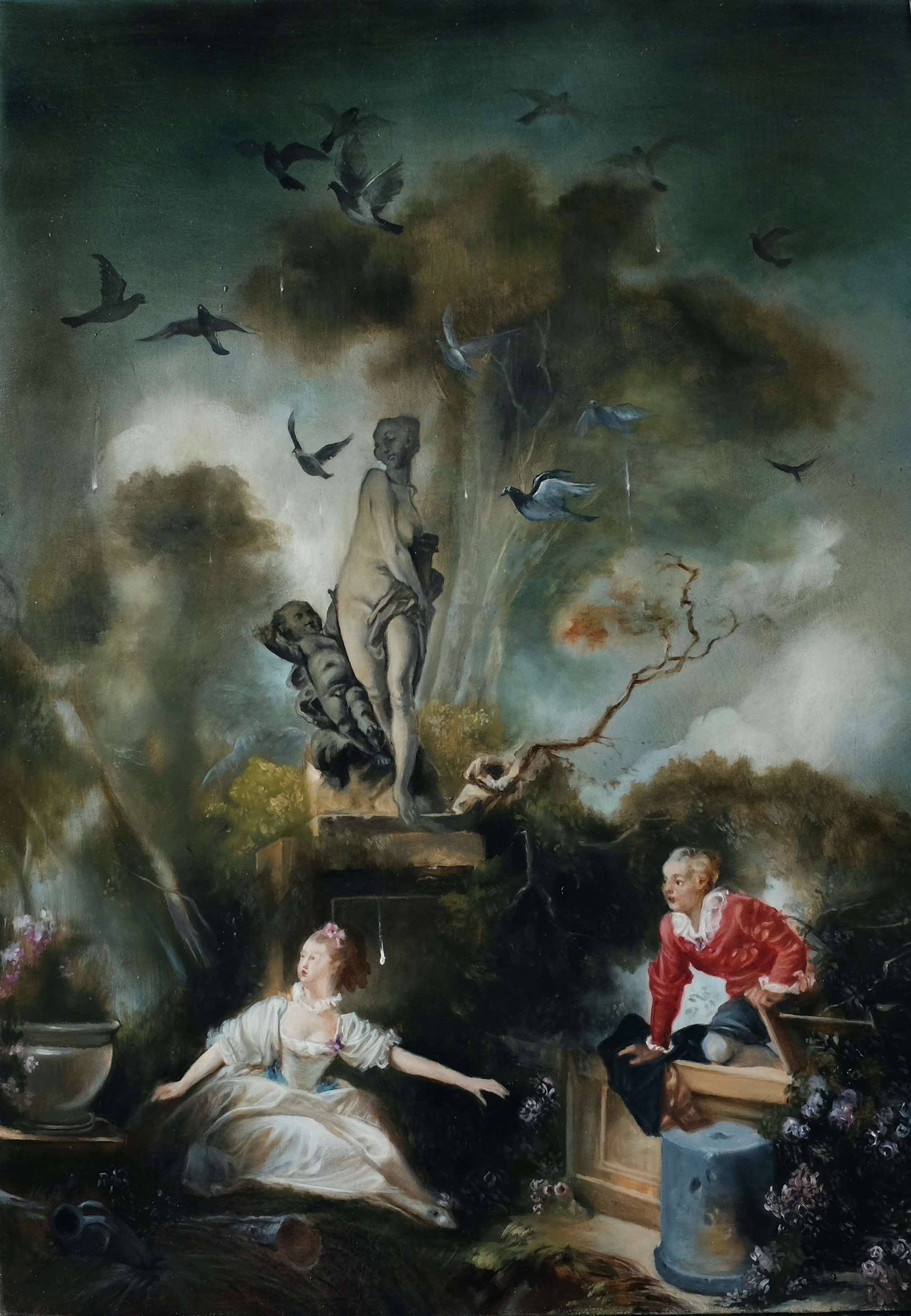 “Vi si vede affiorare un’inquietudine, un sentimento di festa finita o ancora una diffusa minaccia, è l’inatteso che irrompe. Un mondo di grazia, di intimità, di seduzione e malizia è insidiato dall’incombente, per ricordarci che la bellezza e la felicità non sono durevoli”.