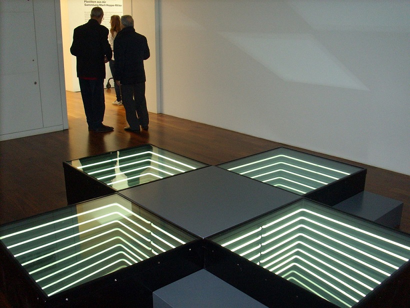 Paolo Scirpa nasce a Siracusa nel 1934. Sin da subito mostra la sua attitudine per l'arte intrattenendo studi di pittura tra Palermo e Catania, frequentando anche per lungo tempo le officine grafiche di Salisburgo dove conobbe John Friedlander nel cui studio successivamente lavorerà a Parigi. Nel '65 si trasferisce a Milano dove realizza i primi “Sole” opere legate ad un espressionismo lirico ma già orientate verso una sintesi formale. Nel 1972 realizza “Megalopoli Consumistica” opera di denuncia consumistica composta da una gran quantità di involucri e contenitori vuoti assemblati tra loro. Il lavoro di Scirpa ha sempre teso verso una ricerca interiore, slegato da ogni rapporto di appartenenza. Negli anni '70passa da una iconografia bidimensionale alla modularità di uno spazio oggettuale che la luce e gli specchi trasformano in polioggettuale. La sua ricerca si orienta verso una dimensione in cui luce e spazio divengono protagonisti immateriali e spettacolari. É nel 1972 che il Maestro inizia la realizzazione dei Ludoscopi, opere tridimensionali che, per mezzo di un sistema di giochi combinatori di neon e specchi, propongono la percezione di profondità fittizie, veri iperspazi-luce in cui è abolito il limite tra il reale e l’illusorio. É in questi anni che Scirpa conosce e frequenta gli esponenti dell'arte ottico-cinetica e del MAC, tra i quali il Maestro Bruno Munari che all'interno dei suoi scritti evidenzierà anche l’aspetto ludico del lavoro dell'artista. Nei sui Ludoscopi l’artista è interessato a rappresentare non tanto la luce reale quanto la luce “ideale” cioè l’idea dell’infinito.