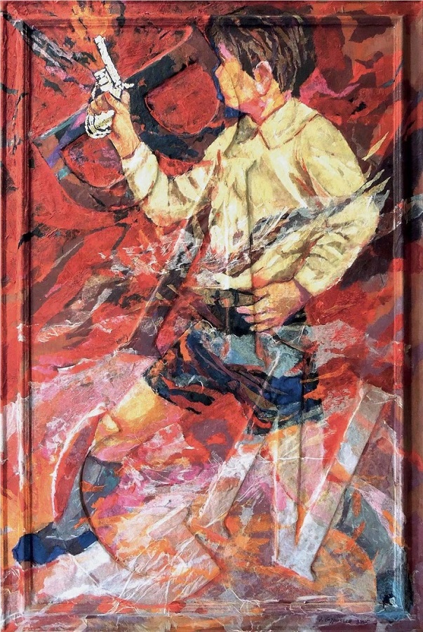 Il percorso espositivo si articola in dieci opere su carta, dieci disegni e si conclude con quattro grandi arazzi, che accolgono il visitatore come epistole tessute con la pazienza del tempo e l’urgenza della visione. Le opere in mostra non si limitano a evocare, ma sembrano invocare un dialogo: tra passato e presente, tra gesto e segno, tra materia e spirito. La carta, fragile ma tenace, superficie e corpo, è protagonista di una narrazione intima che si fa universale.