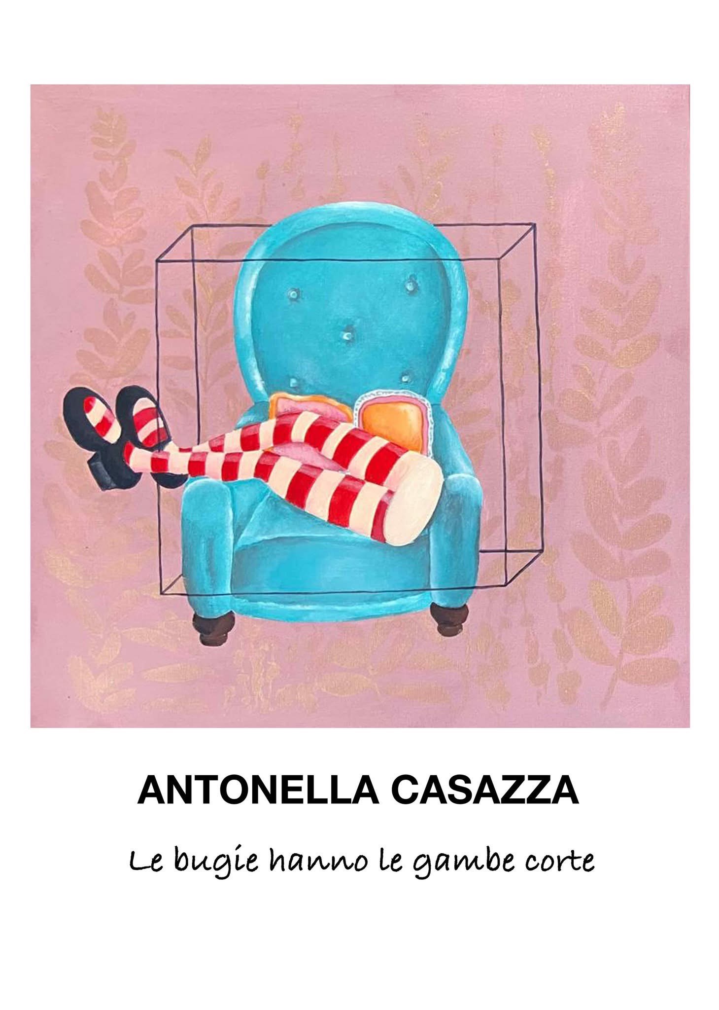 Le bugie non restano ferme. Si muovono, si travestono, inciampano, fuggono. Nella nuova mostra personale di Antonella Casazza, Le bugie hanno le gambe corte, a essere protagoniste sono proprio due gambe giganti, erranti, ripetute e reinventate, che abitano tele, acquerelli, installazioni e vetrine urbane con spirito ludico e visionario.