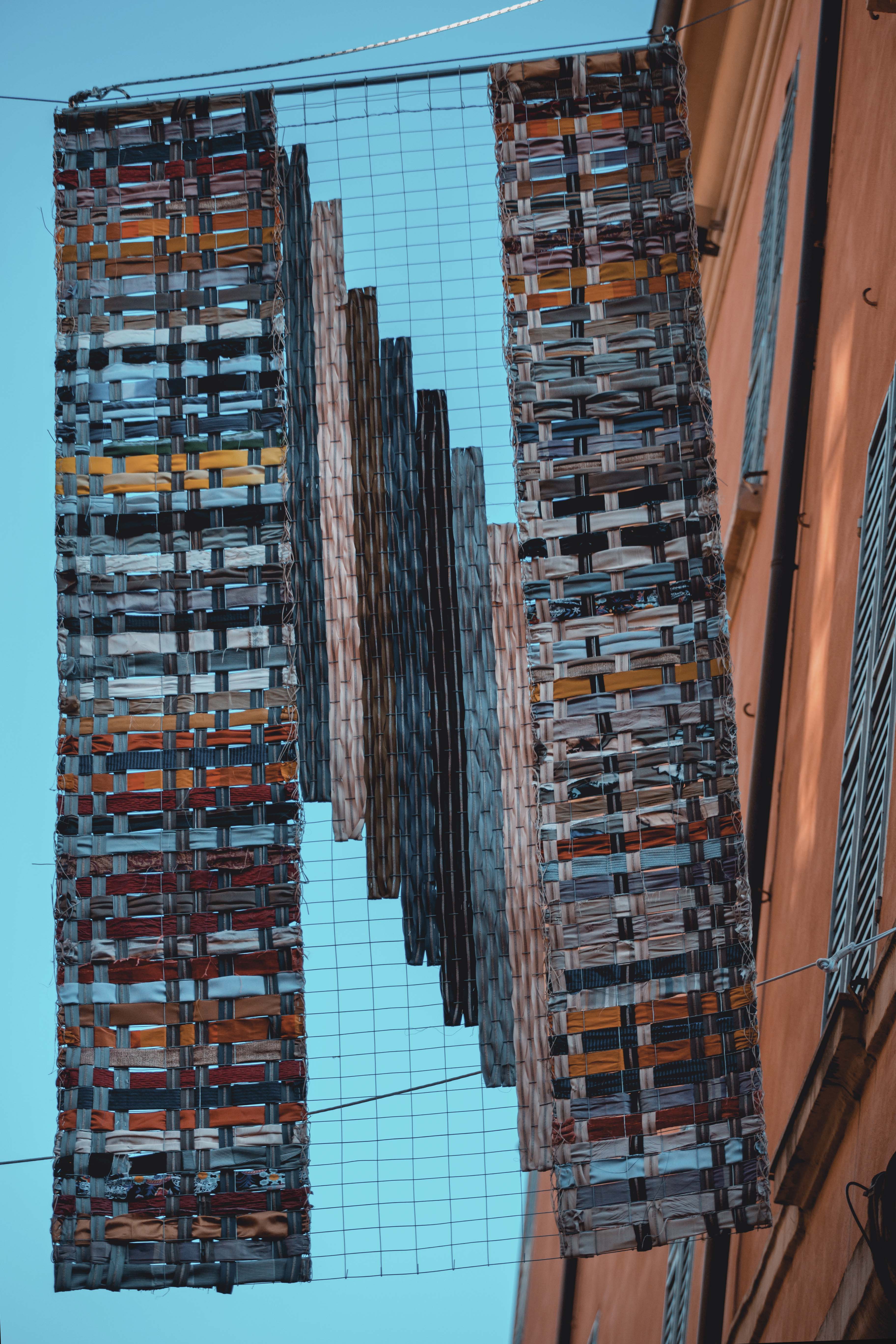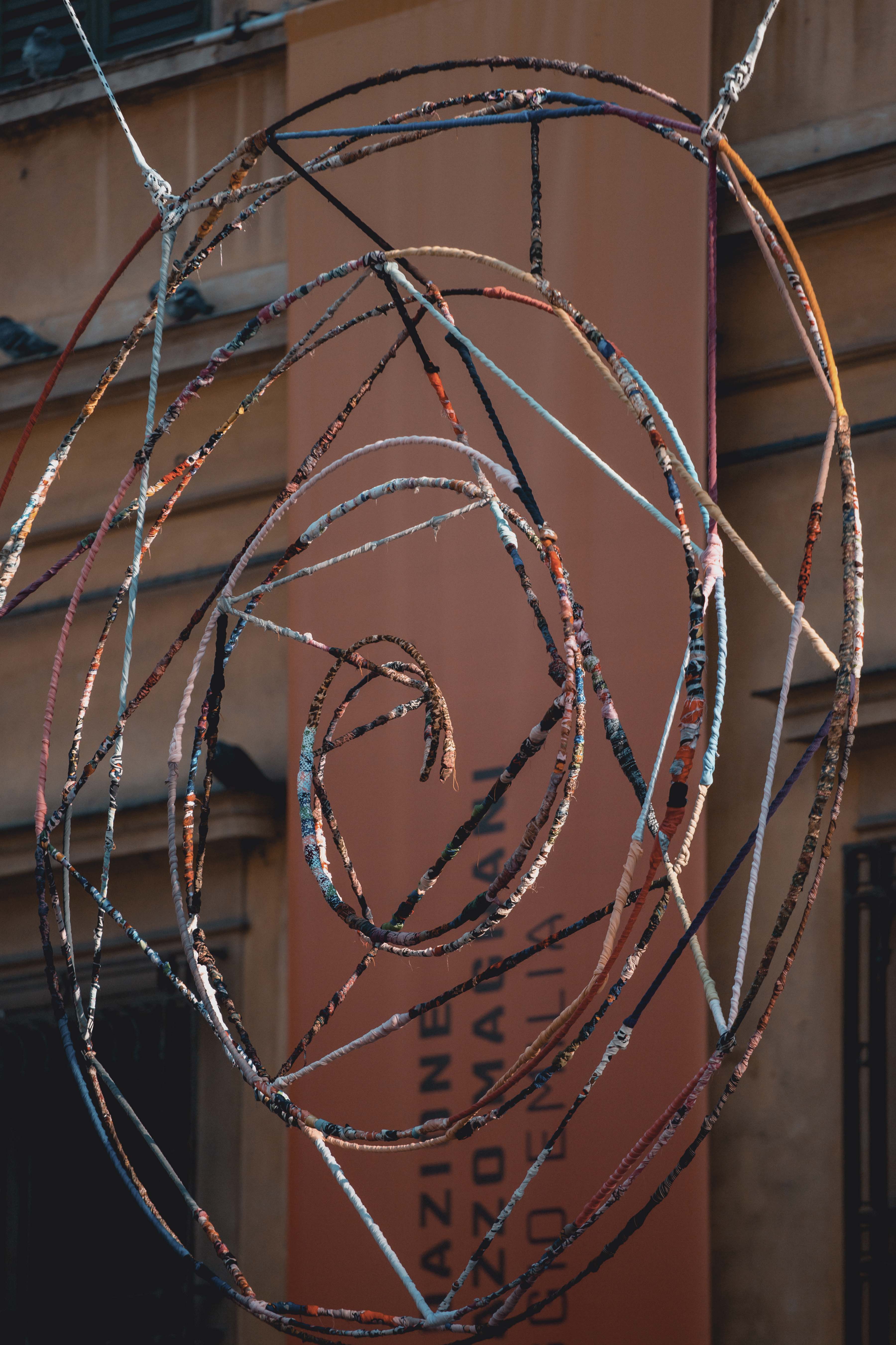 I visitatori che transitano fra i due luoghi possono seguire la logica dei fili tessuti, annodati, avvolti, addobbati, cuciti. Tassonomia del decoro urbano in versione tessile: disegno in aria, stendardo, rizoma, arazzo, abitacolo, panni stesi.