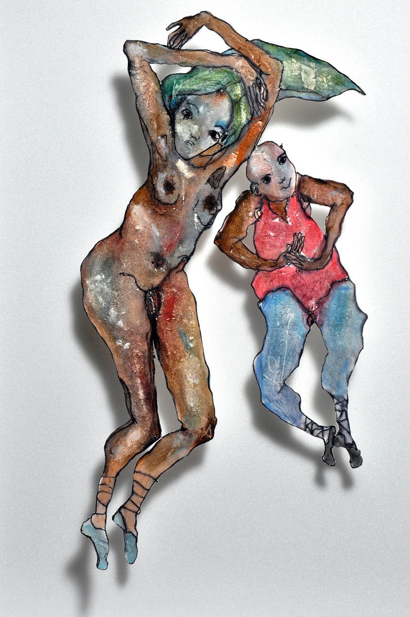 In mostra, una ventina opere, caratterizzate da figure umane dipinte su carta, ritagliate ed esposte come sculture o spillate all’interno di teche entomologiche come bizzarrie da collezione. Corpi profondamente segnati dalla loro storia e deformati dalle continue pressioni cui ogni individuo deve fare fronte. Con questo progetto, De Sarno esplora nuovi canoni di bellezza, esito di una sensibilità esacerbata che si esplica in “corpi sensibili”, tra ironia, lacerazioni e riferimenti autobiografici.