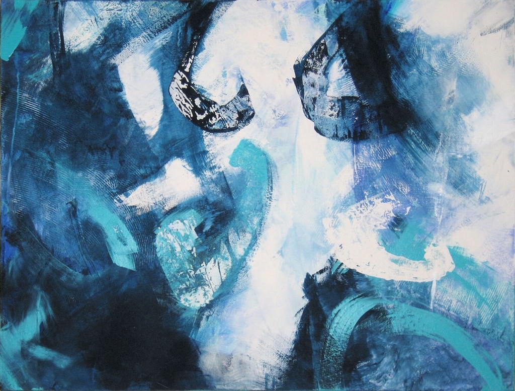 Realtà nuda, ma soprattutto sono gli sguardi a sorprendere la voglia di raccontare le loro anime. Ma anche uno stile di vitalità del colore che affonda le sue radici nel legame sentimentale della pittrice e la sua terra, in una visione profonda, percepita ed affiorante dalle estreme interiorità umane nella mente profonda. Astratte emozioni di colore e luce fusi in spazi meditati, ed esplorati ogni istante mediante una metamorfosi subliminale, uno stile pittorico preparato con esperienza, con gusto estetico della forma-colore, emozionato ed emozionante (“A giorni alterni io sono la luna”, acrilico su tela, 2007).