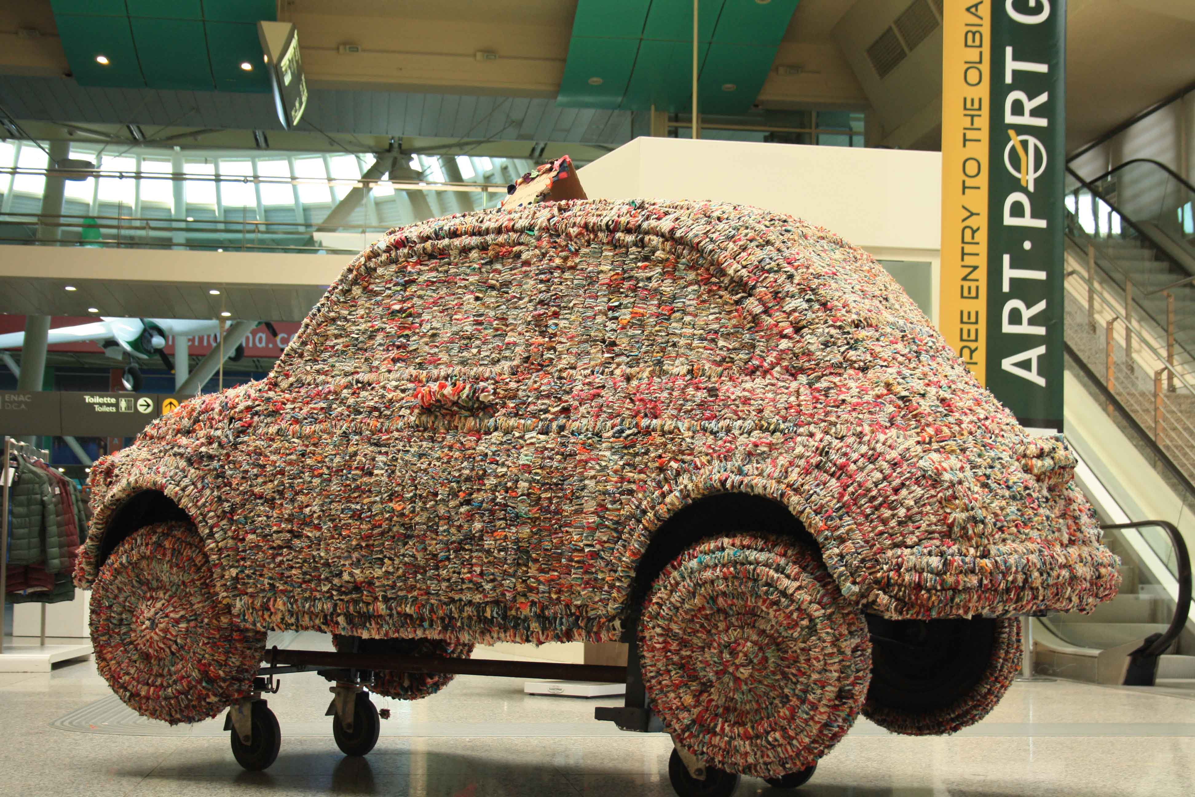 L’ALLESTIMENTO - “Oggetti nascosti”, questo è il titolo della mostra-laboratorio, comincia al piano terra nell’Area Partenze dell’Aeroporto Olbia Costa Smeralda con un vecchio modello della Fiat 500 completamente rivestito da piccole tessere di tessuto. Gli altri oggetti nascosti, che compongono l’intero progetto, sono esposti all’interno della sala museale al primo piano.