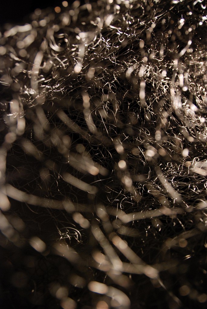 Il lavoro di Antonella Romano sembra palesarsi immediatamente per una grande gestualità, all’interno di una ricerca in cui la sperimentazione degli strumenti diviene, simbioticamente, momento contemplativo e realizzazione dell’opera; l’idea si forma nella mente e in essa diviene sostanza, cresce fin quando non sarà matura per venire al mondo, senza passaggi intermedi e senza certezze su quale potrà, poi, essere il risultato finale. Un lavoro fatto di pazienza, di calma e di manualità; il gesto di intrecciare i fili di metallo, quasi a tessere preziose trame ha il sapore di altri tempi.