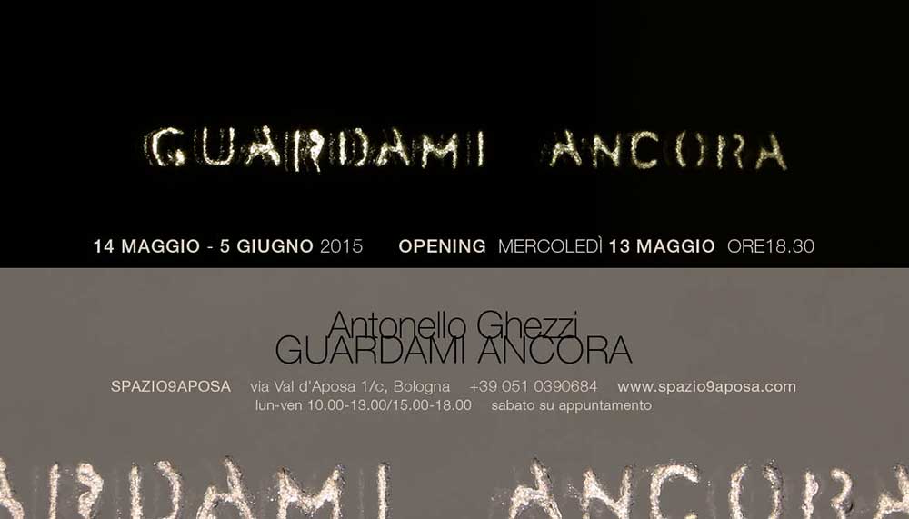 La mostra che il collettivo artistico Antonello Ghezzi (Nadia Antonello e Paolo Ghezzi) propone al pubblico si caratterizza come una installazione dove parole, riflessi e luce si intersecano, creando un dialogo tra lo spettatore, gli altri e lo spazio. Attraverso un gioco di rapporti che interrogano lo sguardo, gli artisti intendono spingere l'osservatore a guardare e guardarsi reciprocamente, interagendo con gli sguardi altrui, cercando di andare oltre al limite narcisistico dello specchiarsi, verso un’intesa che è una ripetizione dell'intenzione "guardami ancora". Insistentemente questa frase ci spinge a chiederci chi è a porre la domanda, se l'oggetto specchiante o colui che si specchia, se il soggetto che sta osservando o i riflessi che per natura del supporto interferiscono e interagiscono. In un momento storico dove il voyeurismo e il mettersi in mostra spopolano imponendosi come legge per l'interazione sociale, l'affermazione "guardami ancora" estremizza e porta quasi all'esasperazione il concetto stesso dell'osservare e dell'osservarsi. Chi si specchia chiede a se stesso di guardarsi ancora, di andare più in profondità, di osservare il mondo più attentamente, fuori dalle logiche della superficialità; Il circolo specchiato sotto lo stesso cielo stellato ci accomuna nella dinamica del muoversi all'interno di uno spazio.