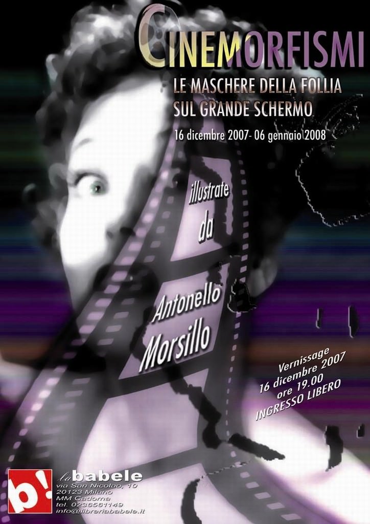 Cinemorfismi rappresenta figurativamente gli estremi effetti delle ossessioni umane sul volto di personaggi cinematografici. Con la sua personale tecnica, tra la fotografia e l’arte grafica, Morsillo ci spiega le espressioni estreme di queste morbose e sensuali maschere