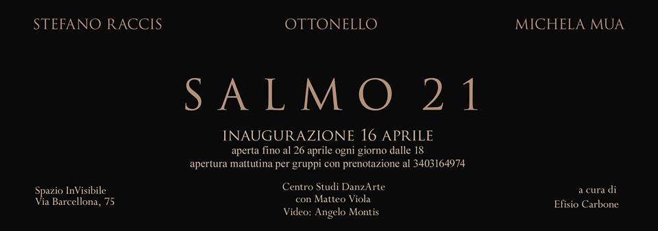 •Antonello Ottonello, Stefano Raccis e Michela Mua, tre artisti interpreti di forme d'arte diverse danno vita nello Spazio InVisibile alla rappresentazione laica di questo Salmo, ossia di una delle immagini più visibili della sofferenza dell'uomo, della sua aspettativa di salvezza, e della sua ricerca di Dio o di un qualcosa al di sopra dell'Umanità; una ricerca che riguarda l'uomo di qualsiasi fede e anche quello che ne sia apparentemente privo.