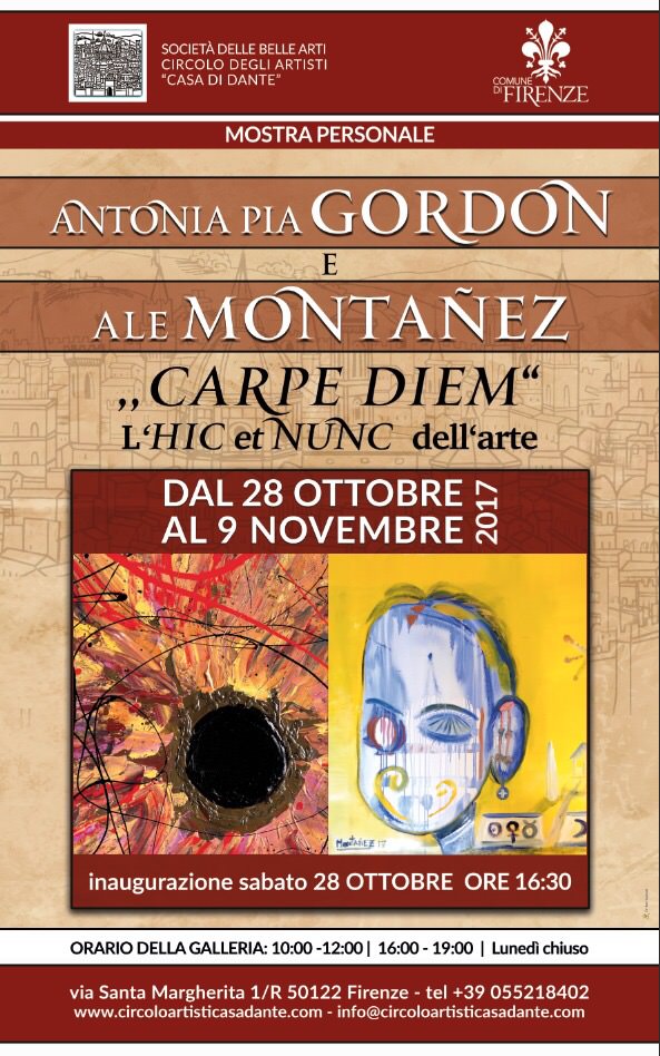 L'essere umano è per sua natura costantemente" intransito ", attraverso spazi e stagioni di vita, in una continua alternanza di congedi e nuovi inizi. Soltanto l'arte, liberandosi dall'egida di Cronos, rimane immutabile. La mostra “Carpe Diem- L’hic et nunc dell’arte”, attraverso le opere degli artisti internazionali Antonia Pia Gordon e Ale Montañez, vuole suggerire nuovi spunti di riflessione sull’eterna lotta tra Thanatos ed Eros, tra Arte e Vita, tra l'ineluttabilità di una finitezza della vita umana e l'immortalità dell'arte e della permanenza della natura.