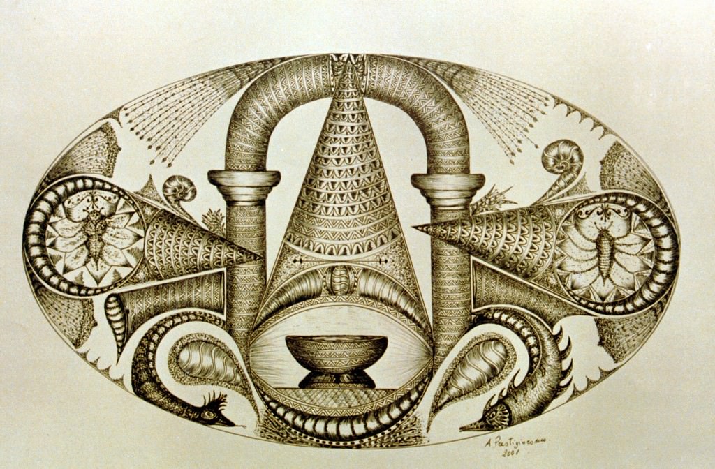 Una mano lieve ma precisa quella dell’artista che ad un linguaggio scevro da schemi (è autodidatta) affianca il rigore del tratto di una semplice penna biro (questo lo strumento da lui utilizzato) creando composizioni oniriche di grande fascino e suggestione oltre che di indubbia maestria.