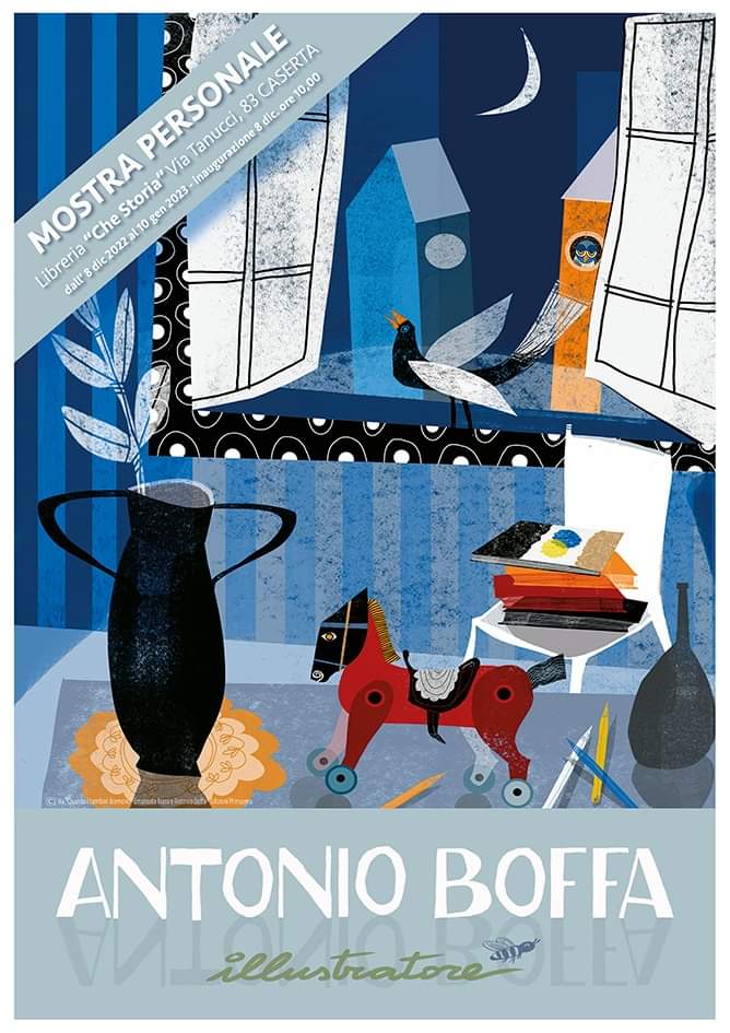 Antonio Boffa e Maria Teresa Palladino in una doppia personale. Boffa con le sue illustrazioni a tema natura, Palladino con un gioco tra radiografie e case archetipiche. Curatore: Massimo Gerardo Carrese, con libreria Che Storia di Caserta.