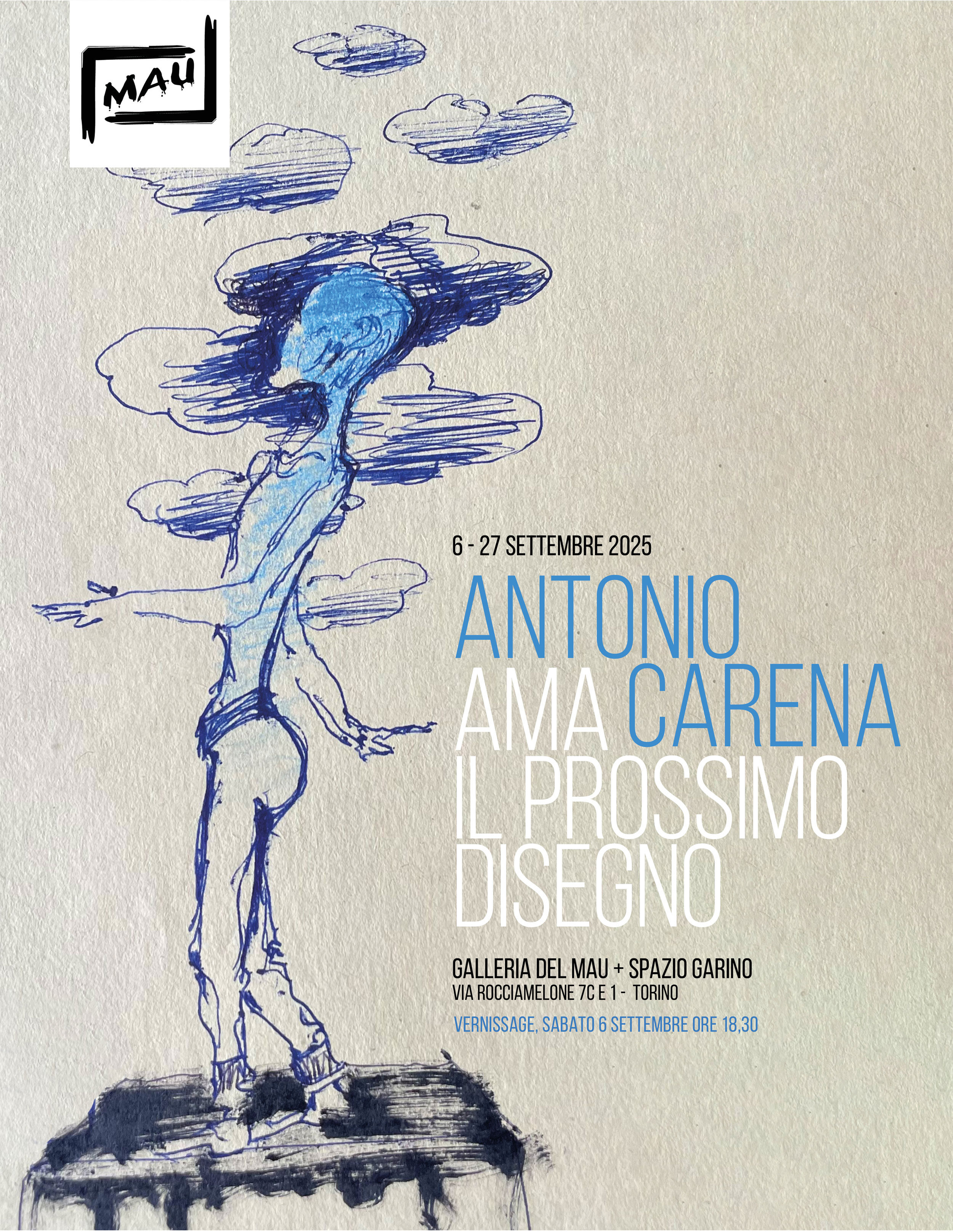 Il MAU – Museo d’Arte Urbana di Torino presenta dal 6 al 27 settembre 2025 la mostra Antonio Carena. Ama il prossimo disegno. In esposizione 20 disegni e circa 15 bozzetti e studi, che raccontano la freschezza del tratto e il processo creativo dell’artista.