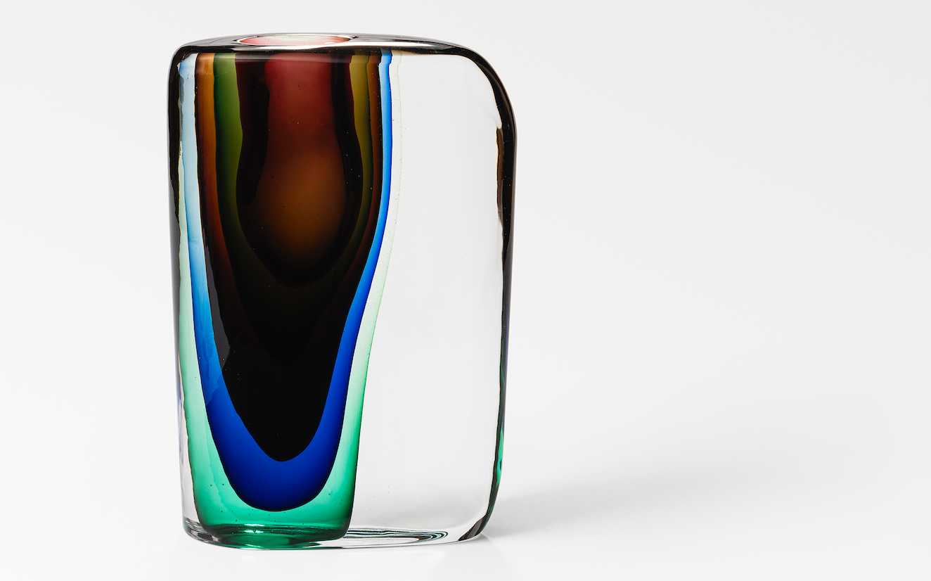 La mostra presenta una quarantina di pezzi che Antonio Da Ros ha realizzato con la vetreria Cenedese a partire dalla fine degli anni cinquanta in uno stretto legame con gli eventi espositivi e culturali della Venezia coeva.