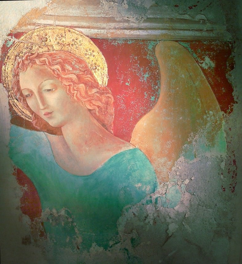Sui muri antichi di una torre del ‘300 nascono così delle opere uniche. Terre naturali su intonaco di calce e sabbia e poche ore per dipingere prima che l’intonaco si asciughi, solo così può avvenire la magia di questa tecnica : il colore assorbito dalla calce diventa anch’esso muro. L’affresco richiede grande velocità e sicurezza di esecuzione ed è per questo che viene praticato ormai da pochi Maestri. Le opere nate sul muro antico vengono poi staccate con la tecnica detta “stacco”, usata abitualmente dai restauratori e dopo un accurato anticamento, riposizionate su pannelli o su nuove pareti dove riprendono vita propria come preziosi elementi di decorazione.